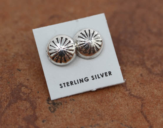 Navajo Native American earrings. They are made from sterling silver. The earrings are about 1/2" in diameter.
