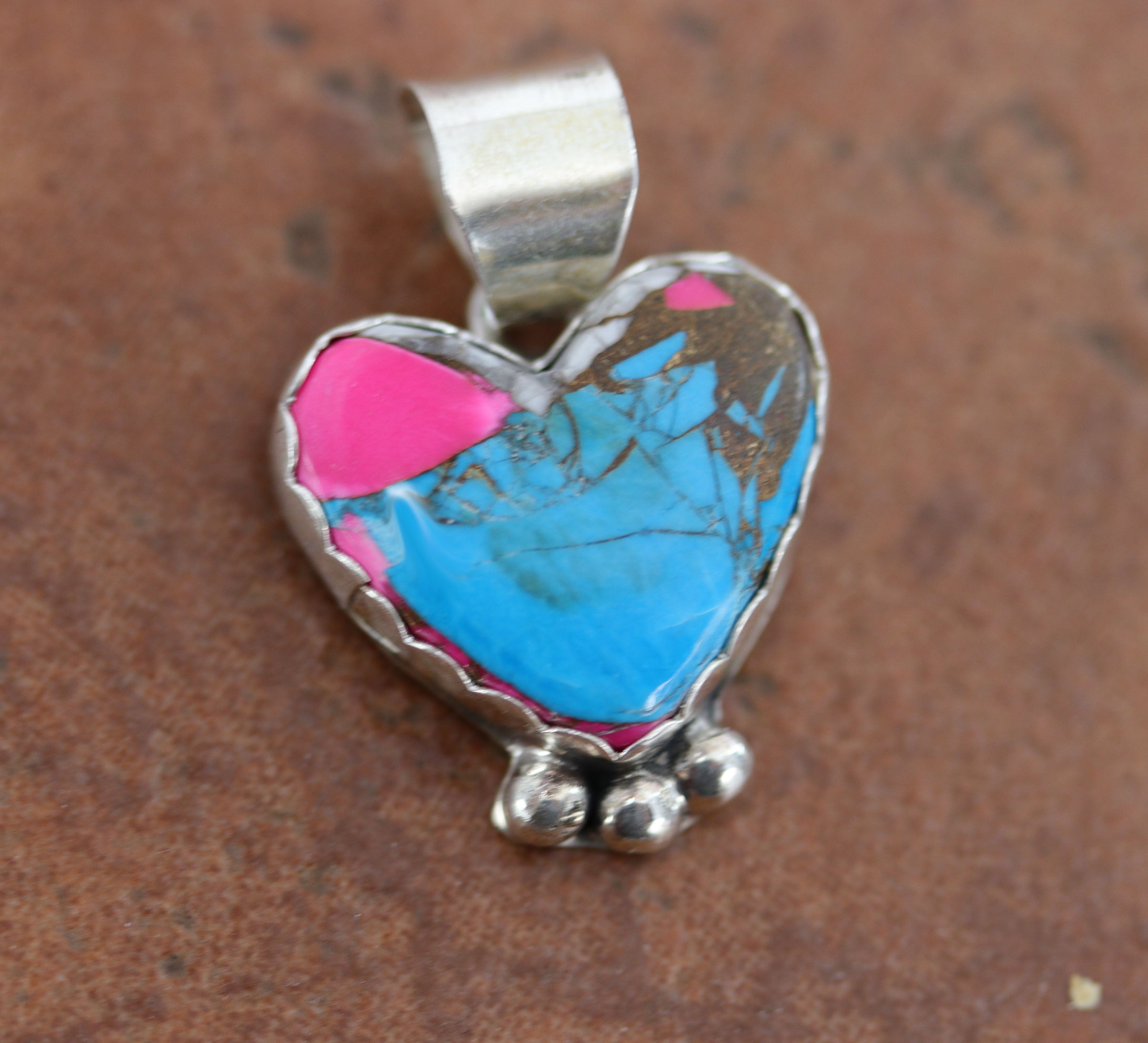 Navajo Silver Cotton Candy Dahlia Turquoise Heart Pendant