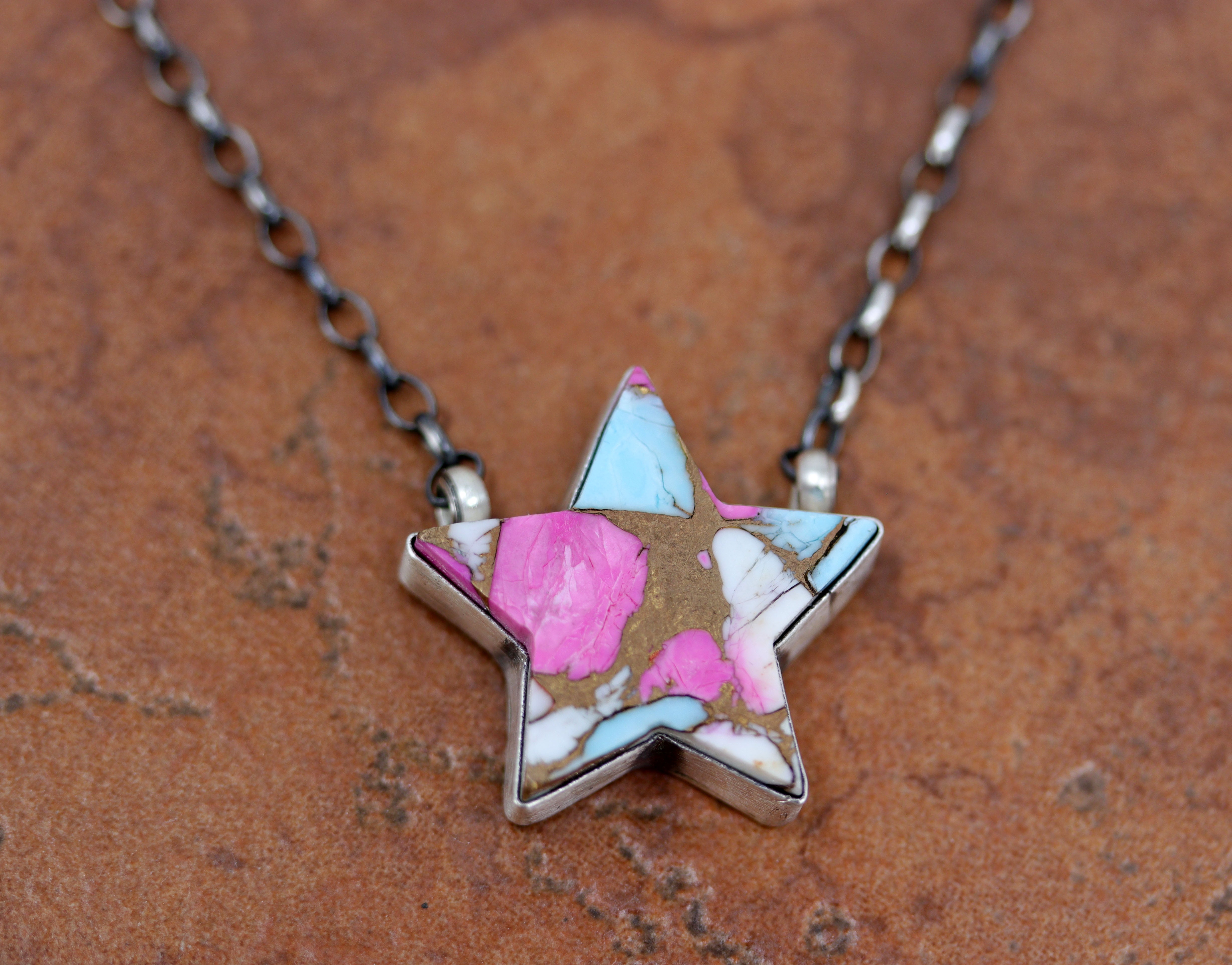 Navajo Silver Cotton Candy Dahlia Turquoise Star Necklace