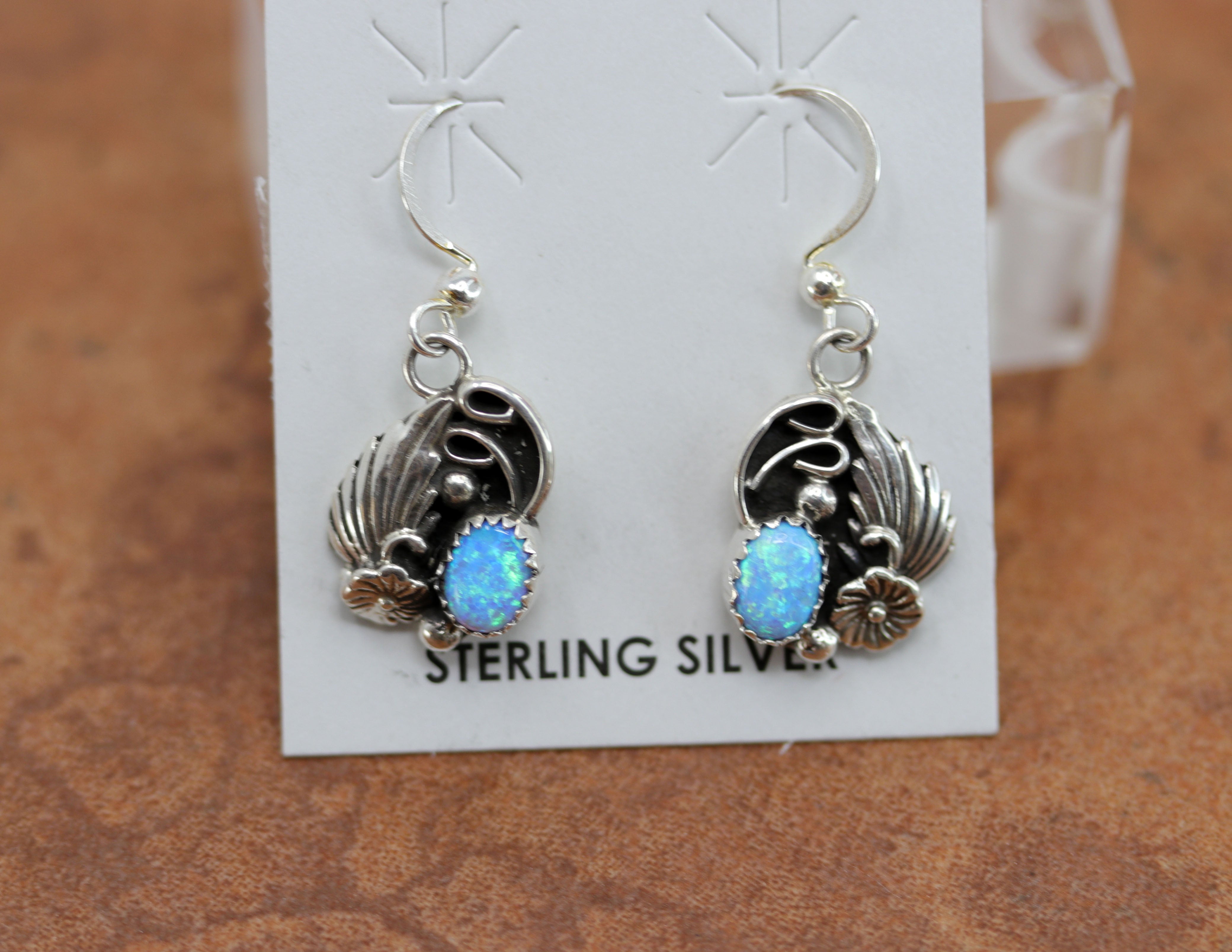 Beautiful Navajo Native American earrings. They are made from sterling silver and created opal. The earrings are about 1 1/4" in length, and 5/8" in width.