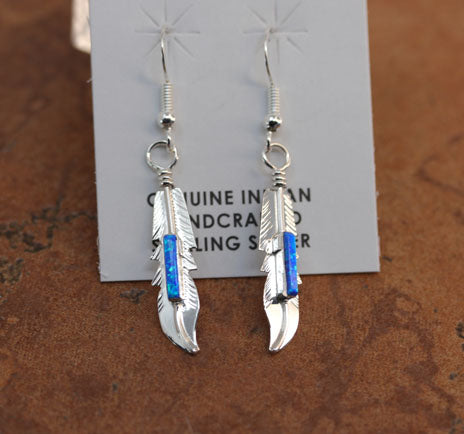 Navajo Silver Created Opal Feather Earrings