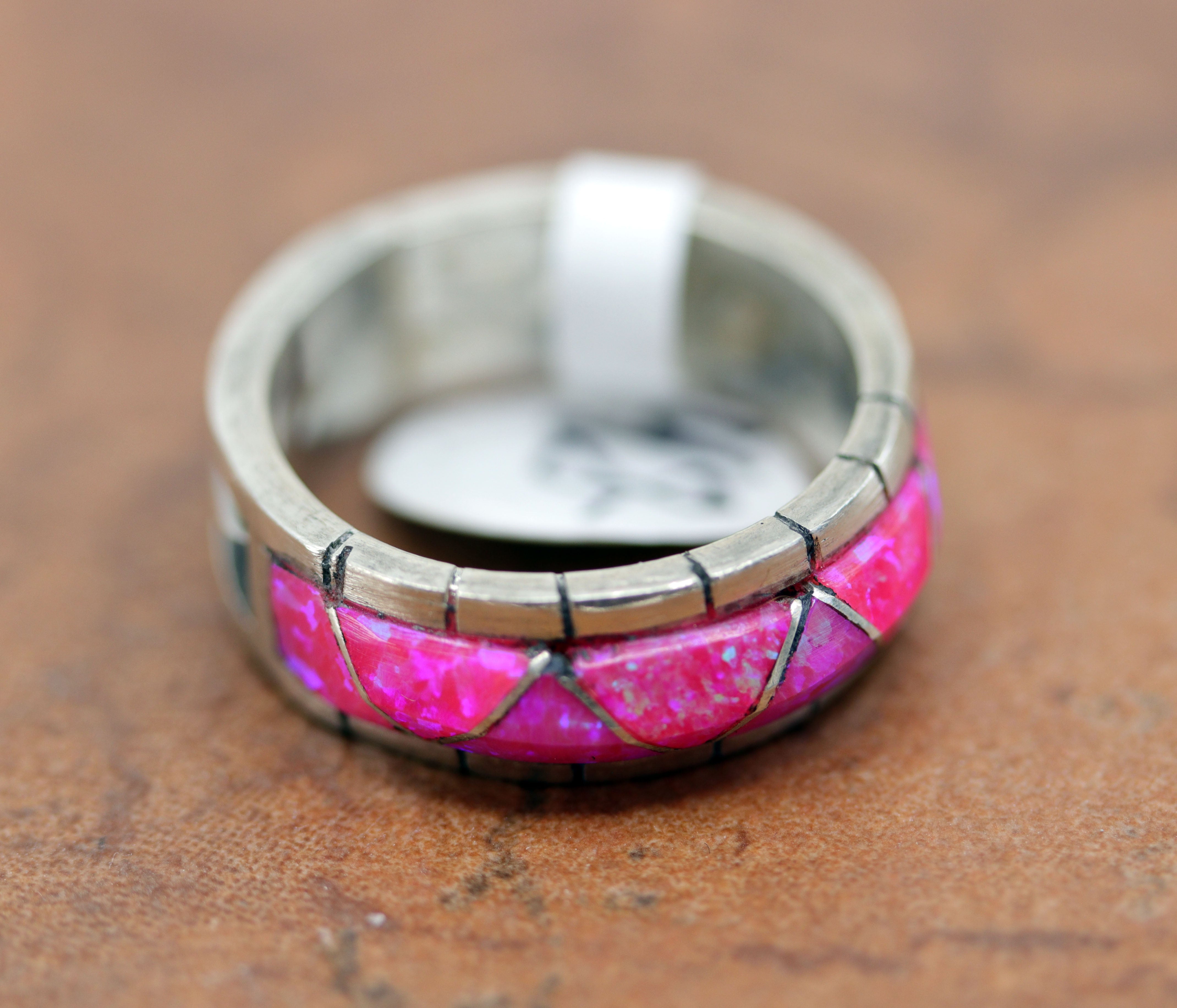 A lovely Navajo Native American ring. It is made from sterling silver and created opal. The ring size 10 1/2 and it is 3/8" in length.
