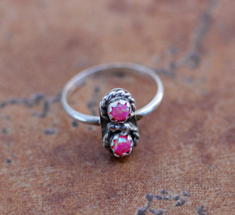 A lovely Navajo Native American ring by Janice Spencer. It is made from sterling silver and created opal. The ring size 4 and it is 1/2" in length.