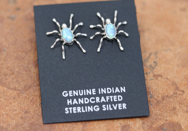 Navajo Silver Created Opal Spider Earrings