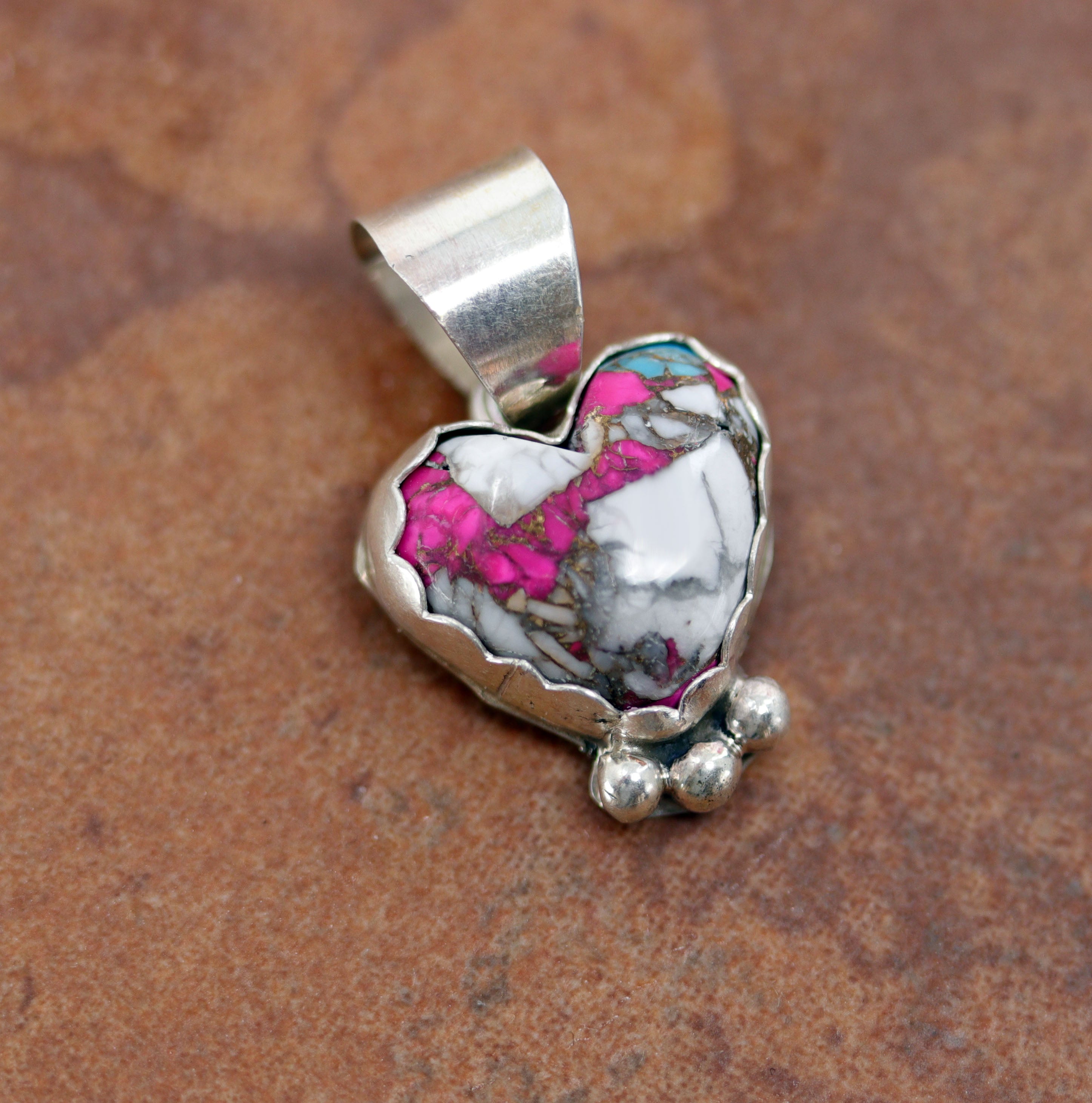 Navajo Silver Dahlia Turquoise Heart Pendant
