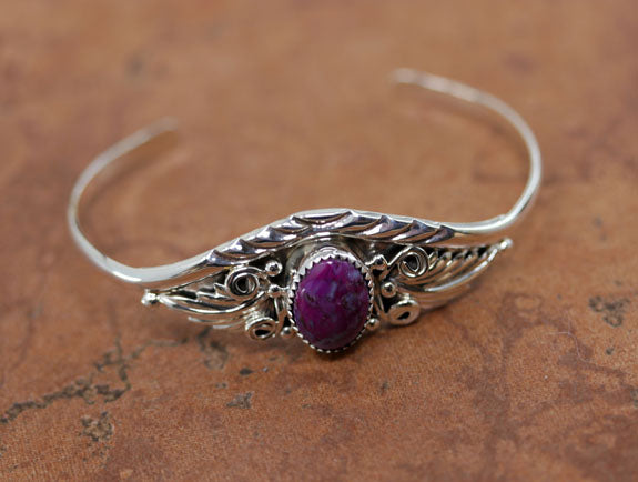 Navajo Native American bracelet. It is made from sterling silver and dyed turquoise. It is about 5 1/2" around and 7/8" wide. The opening is about 1", and it is partly flexible.