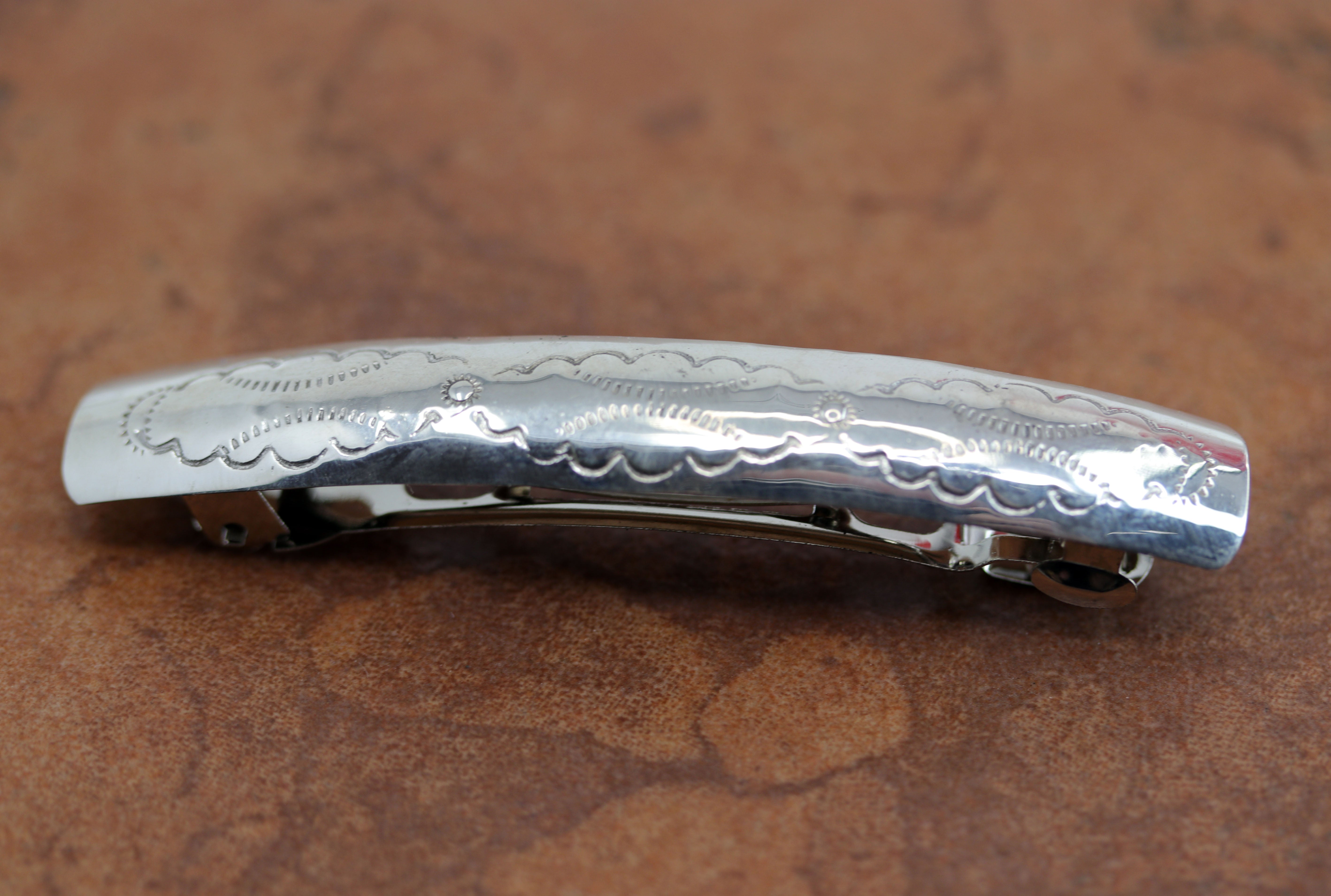 Navajo Native American Barrette made from sterling silver. It is 1/2" long, and about 3 1/4" wide.
