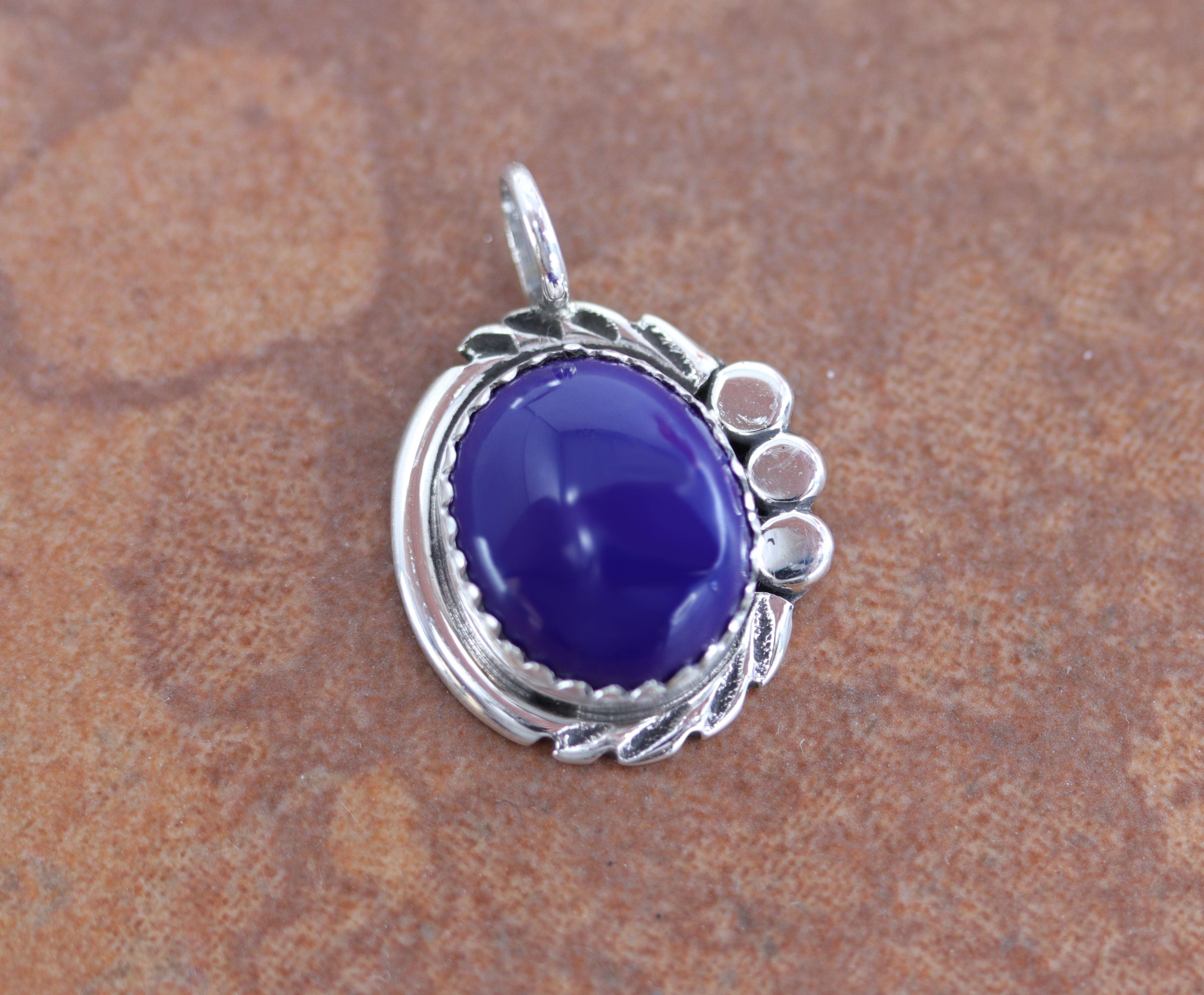 Gorgeous Navajo Native American Pendant. It is made from sterling silver and man made lapis. It is 5/8" in width and 1" in length including the bail.