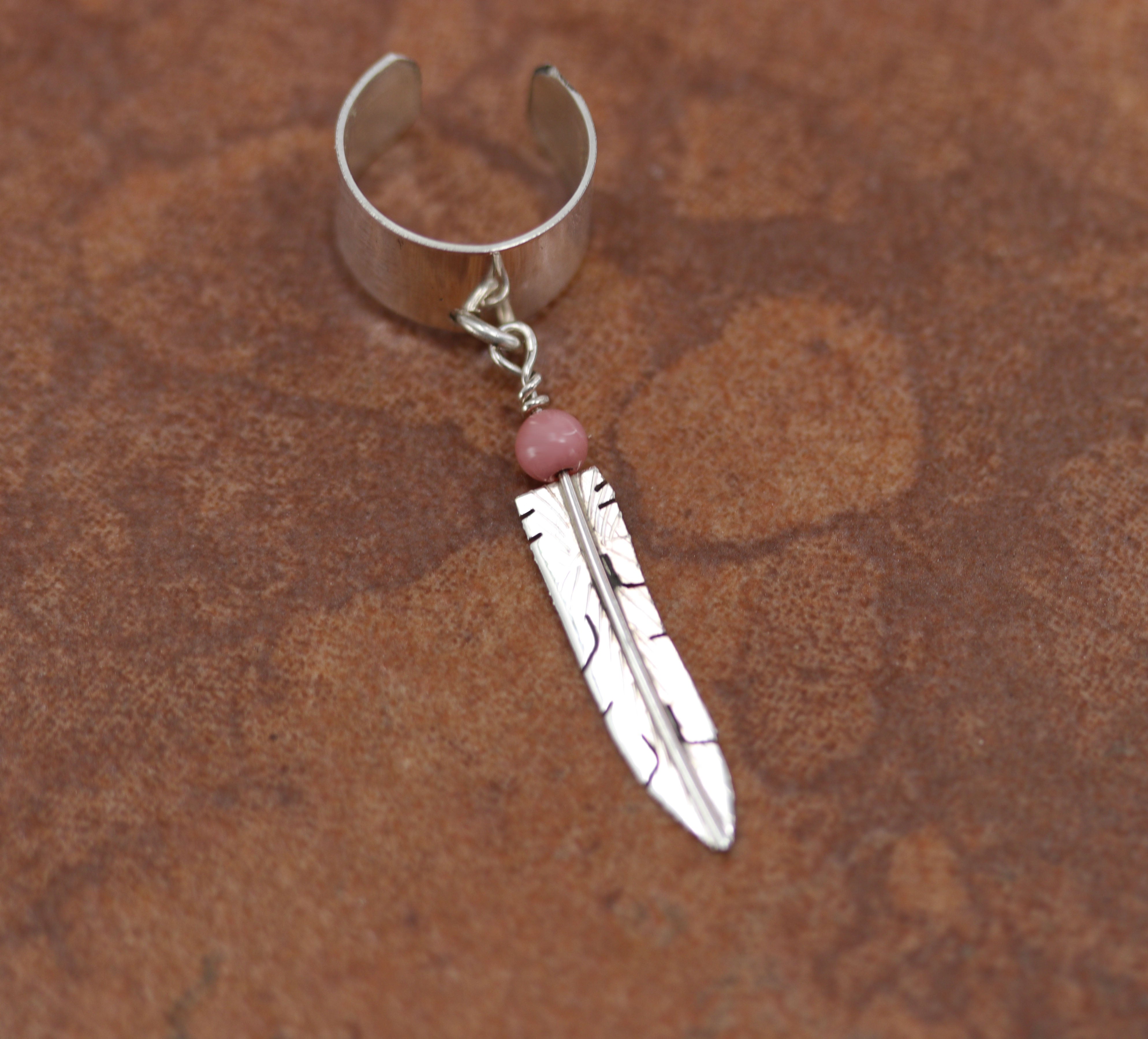 Navajo Silver Pink Quartz Feather Ear Cuff