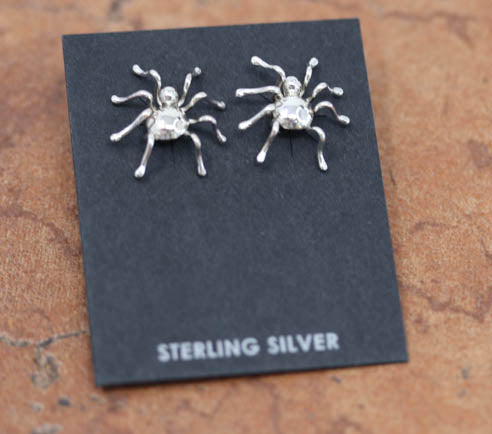 Navajo Native American spider earrings. They are made from sterling silver. The earrings are about 3/4" in length, and 5/8" in width.