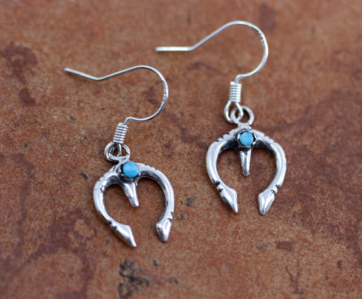 Beautiful Navajo Native American Naja earrings. They are made from sterling silver and turquoise. The earrings are about 1 1/2" in length, and 5/8" in width.