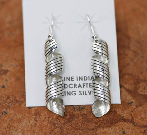 Navajo Native American very nice earrings. They are made from sterling silver. The earrings are about 2 1/8" in length including the hook, and 3/8" in width.