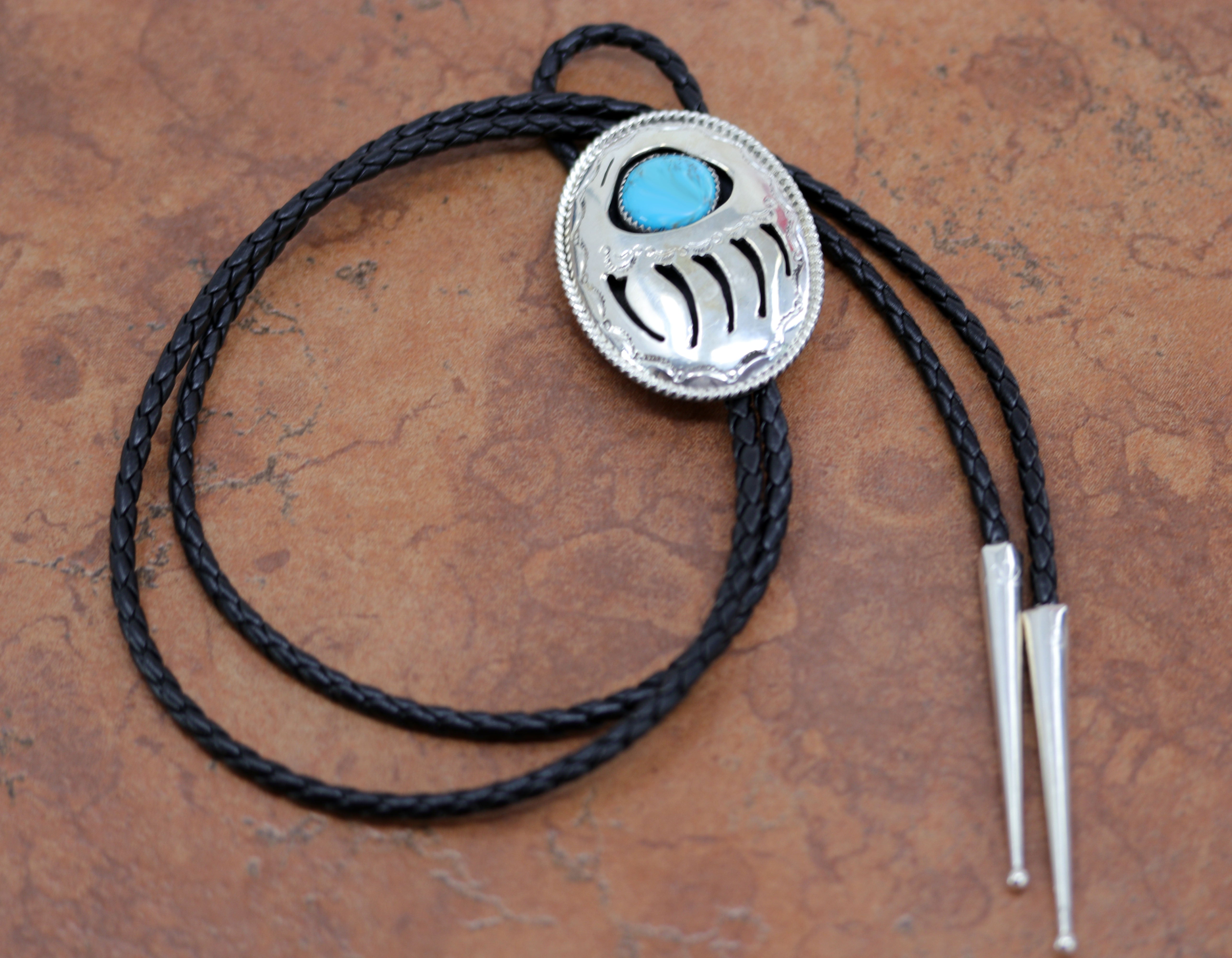 Navajo Silver Turquoise Bear Paw Bolo Tie