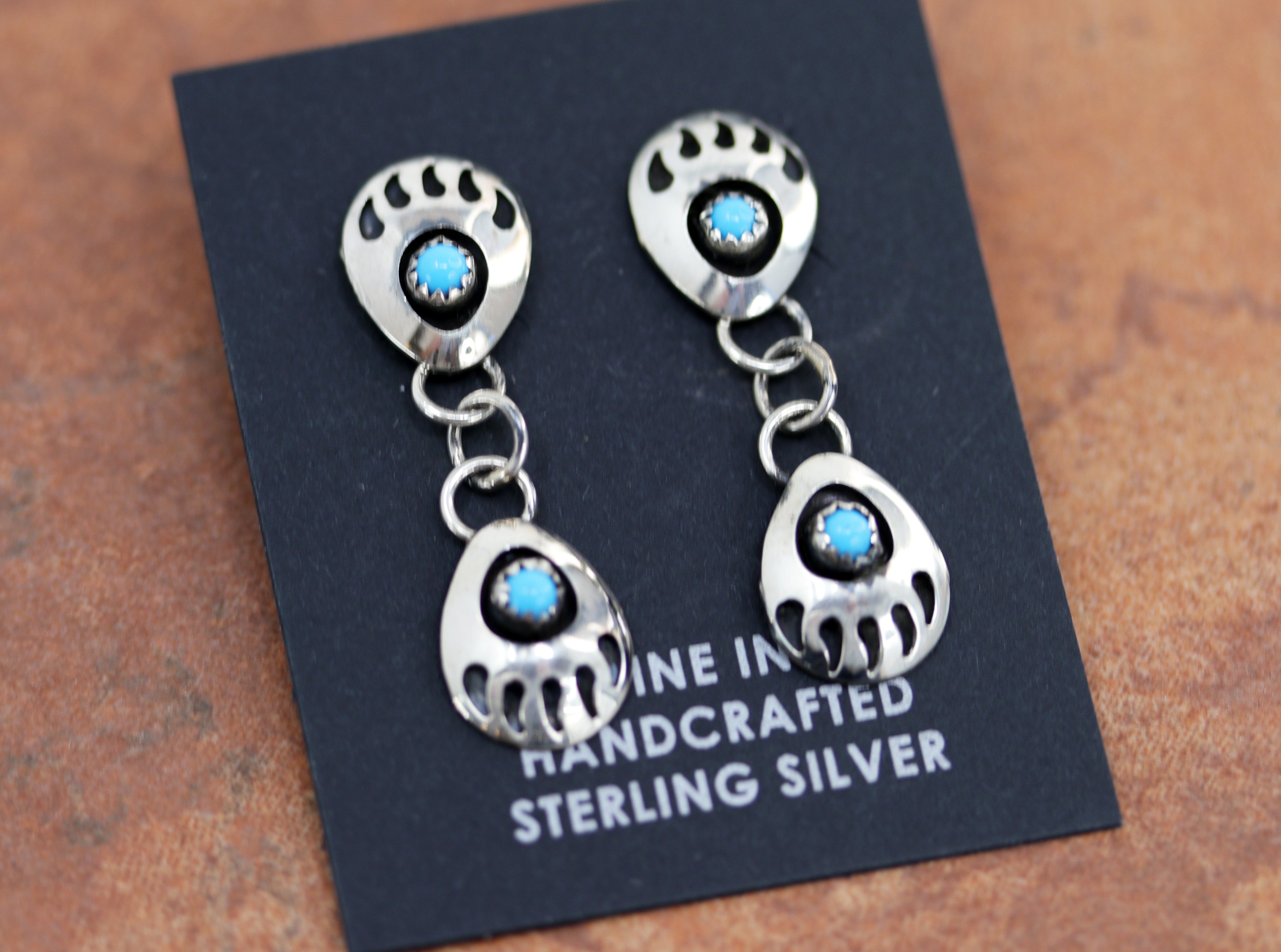 Navajo Silver Turquoise Bear Paw Earrings