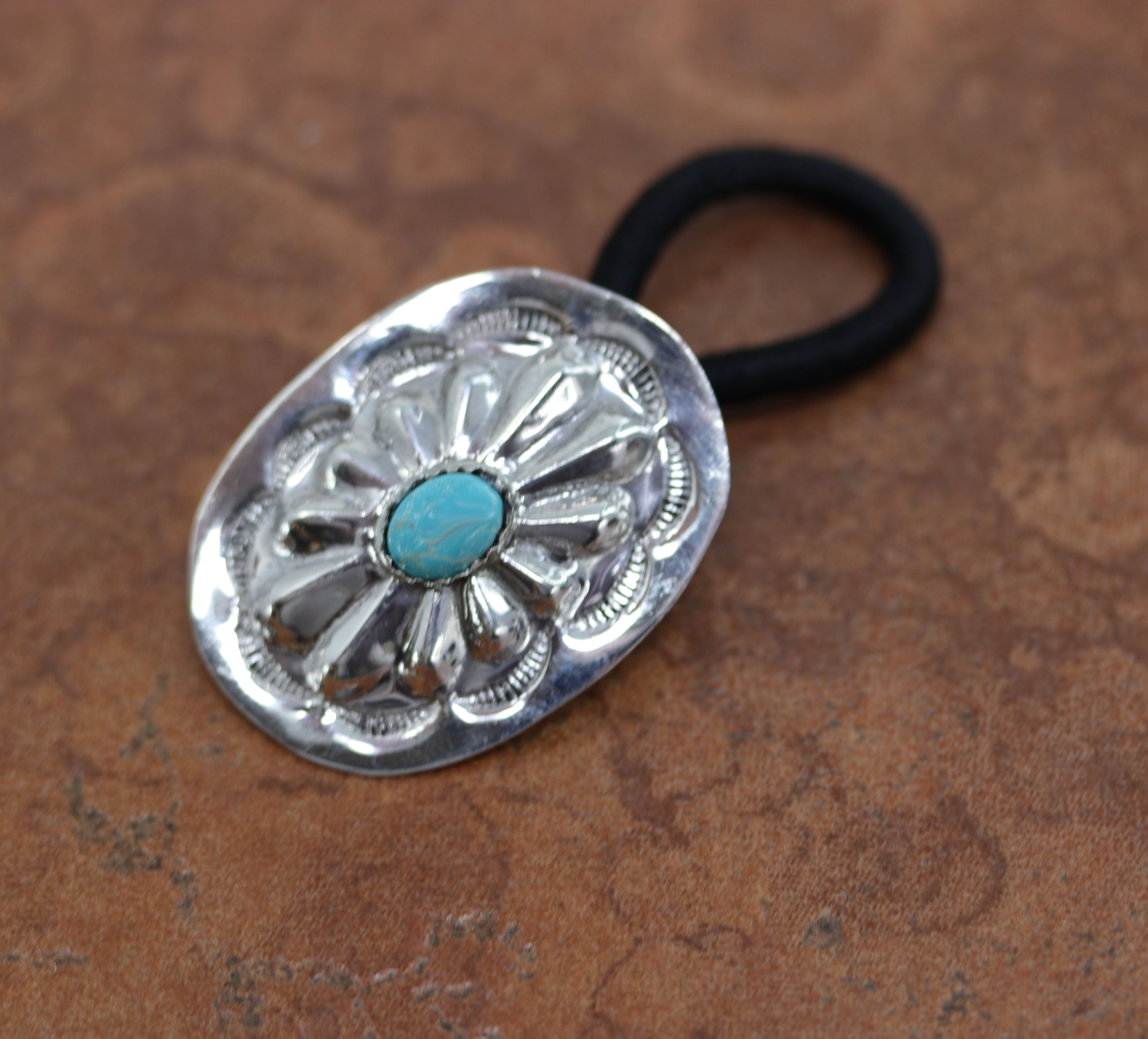 Navajo Silver Turquoise Concho Hair Tie