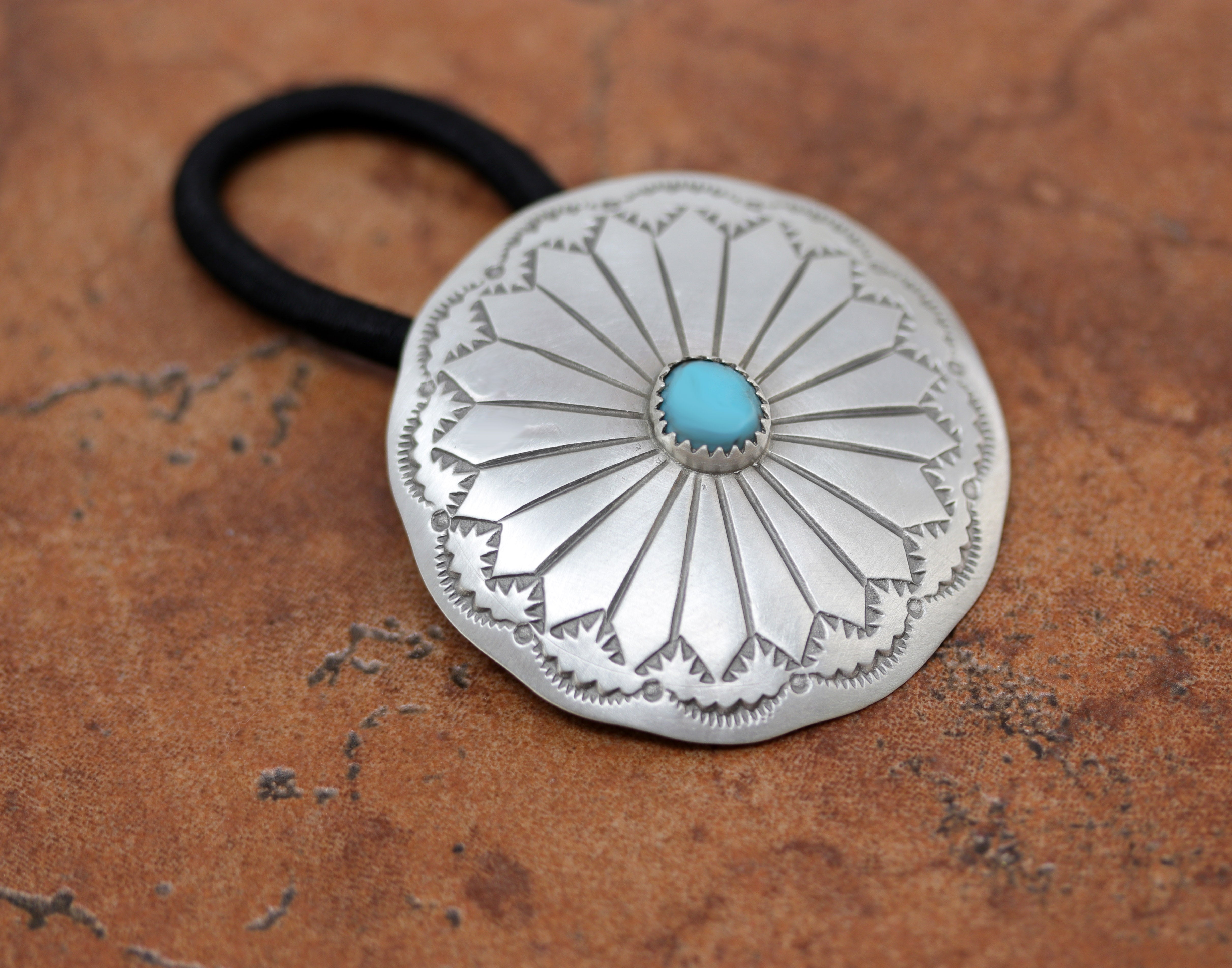 Navajo Silver Turquoise Concho Hair Tie