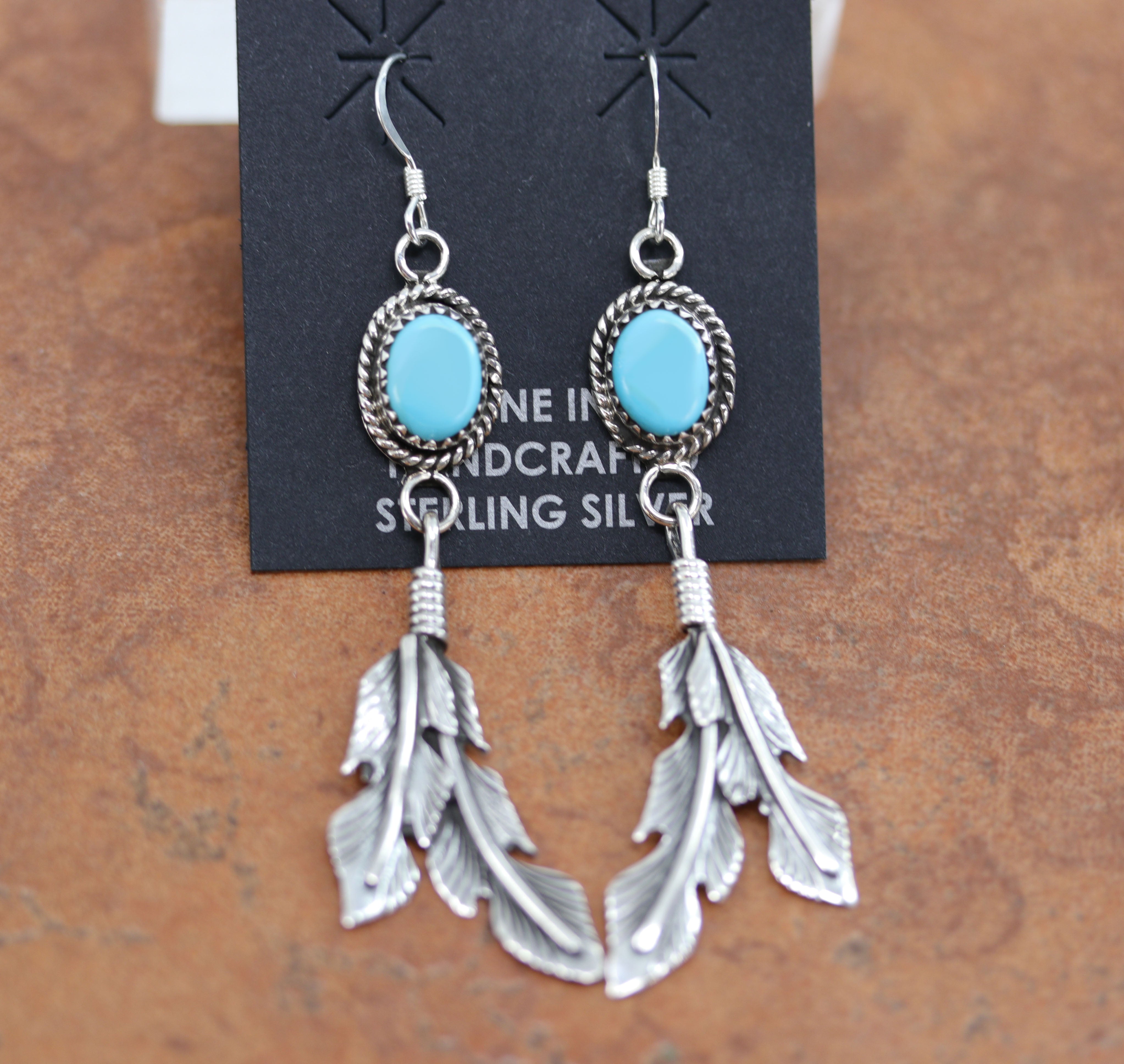 Navajo Silver Turquoise Feather Earrings