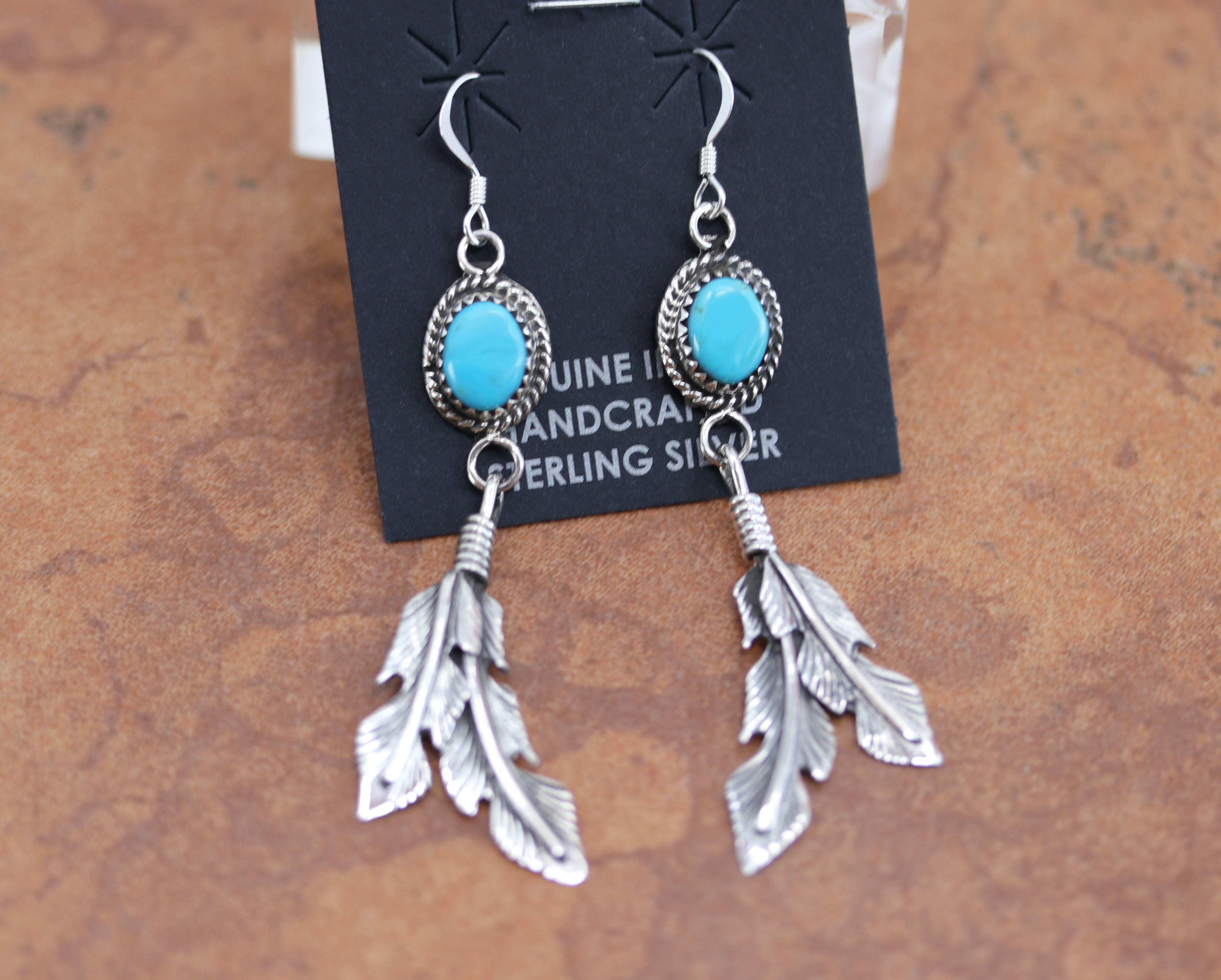 Navajo Silver Turquoise Feather Earrings
