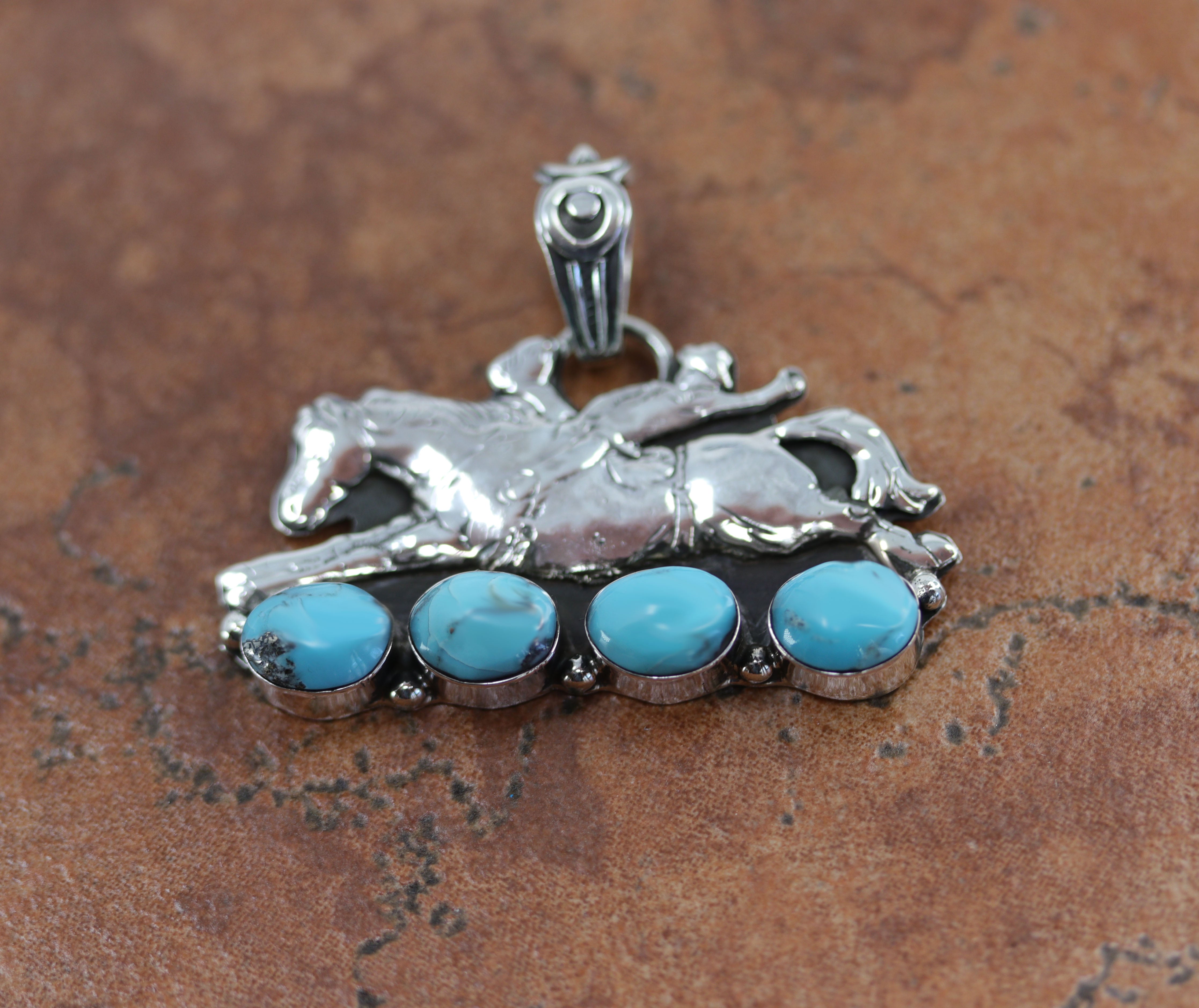 Beautiful Navajo Native American Pendant. It is made from sterling silver and turquoise. It is about 2 1/8" in length including the bail and about 1 5/8" in width.