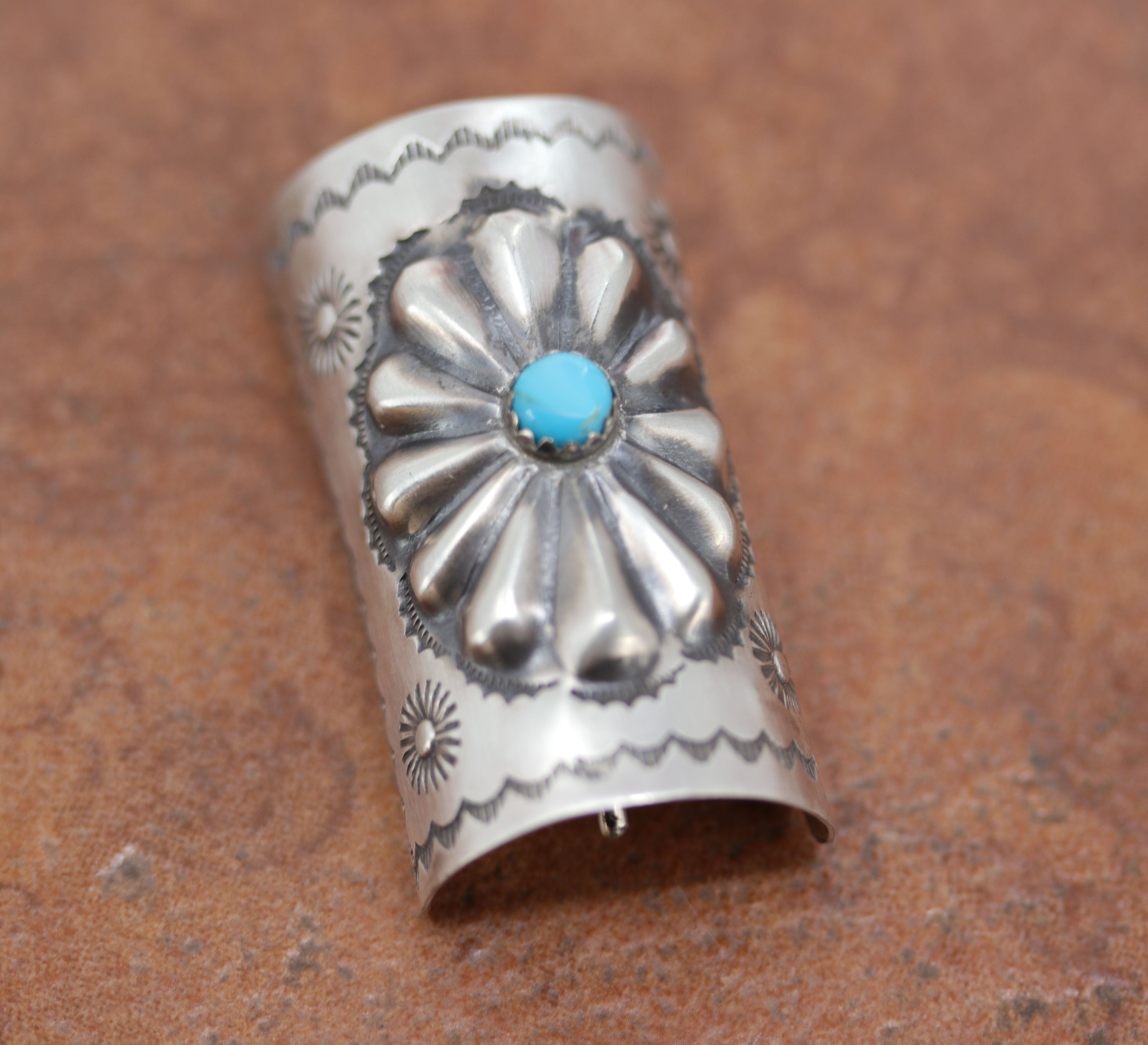 Lovely Navajo Native American Barrette made from sterling silver and turquoise. It is 1 5/8" long, and about 7/8" wide.