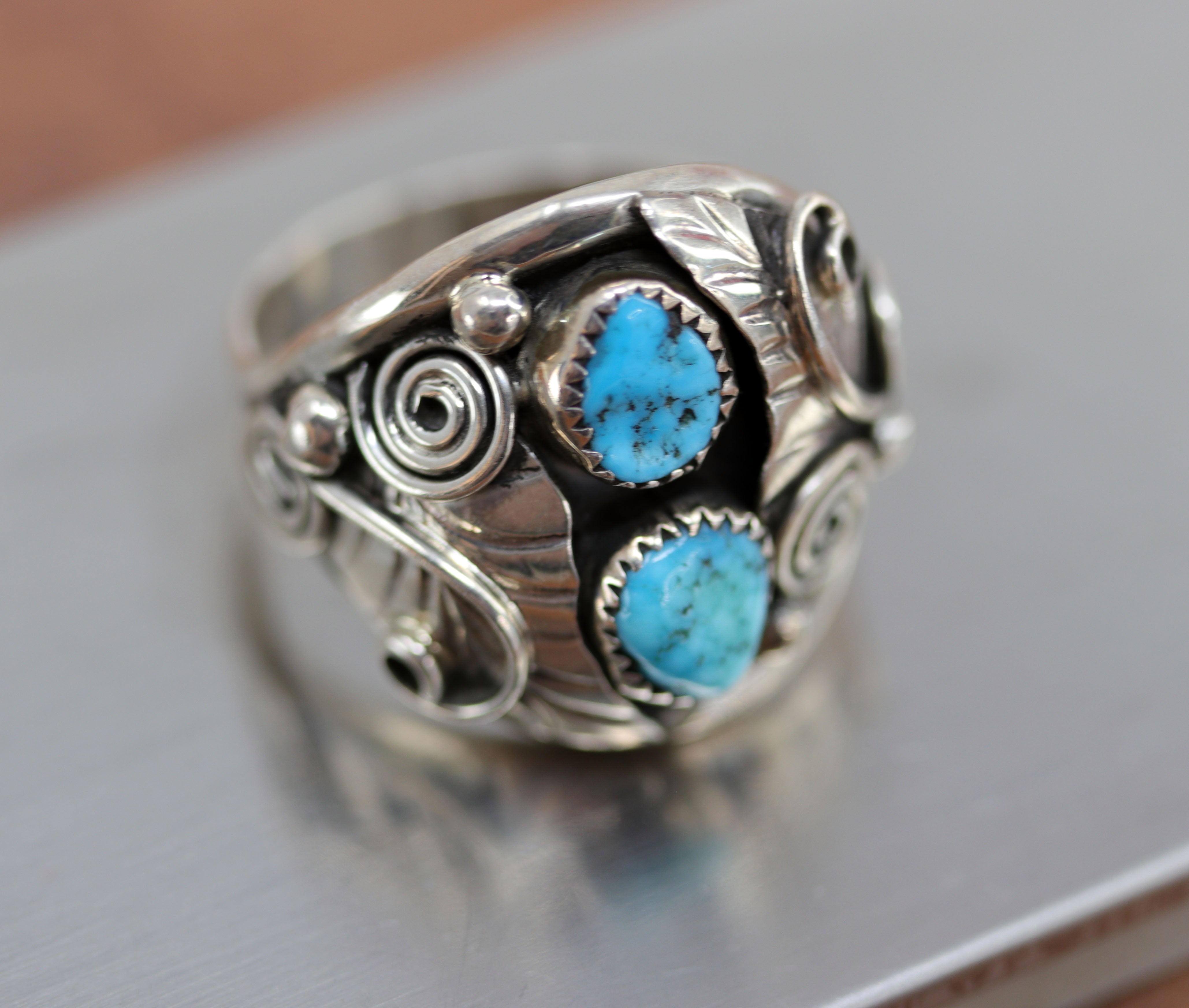 Navajo Silver Turquoise Ring Size 11 1/2