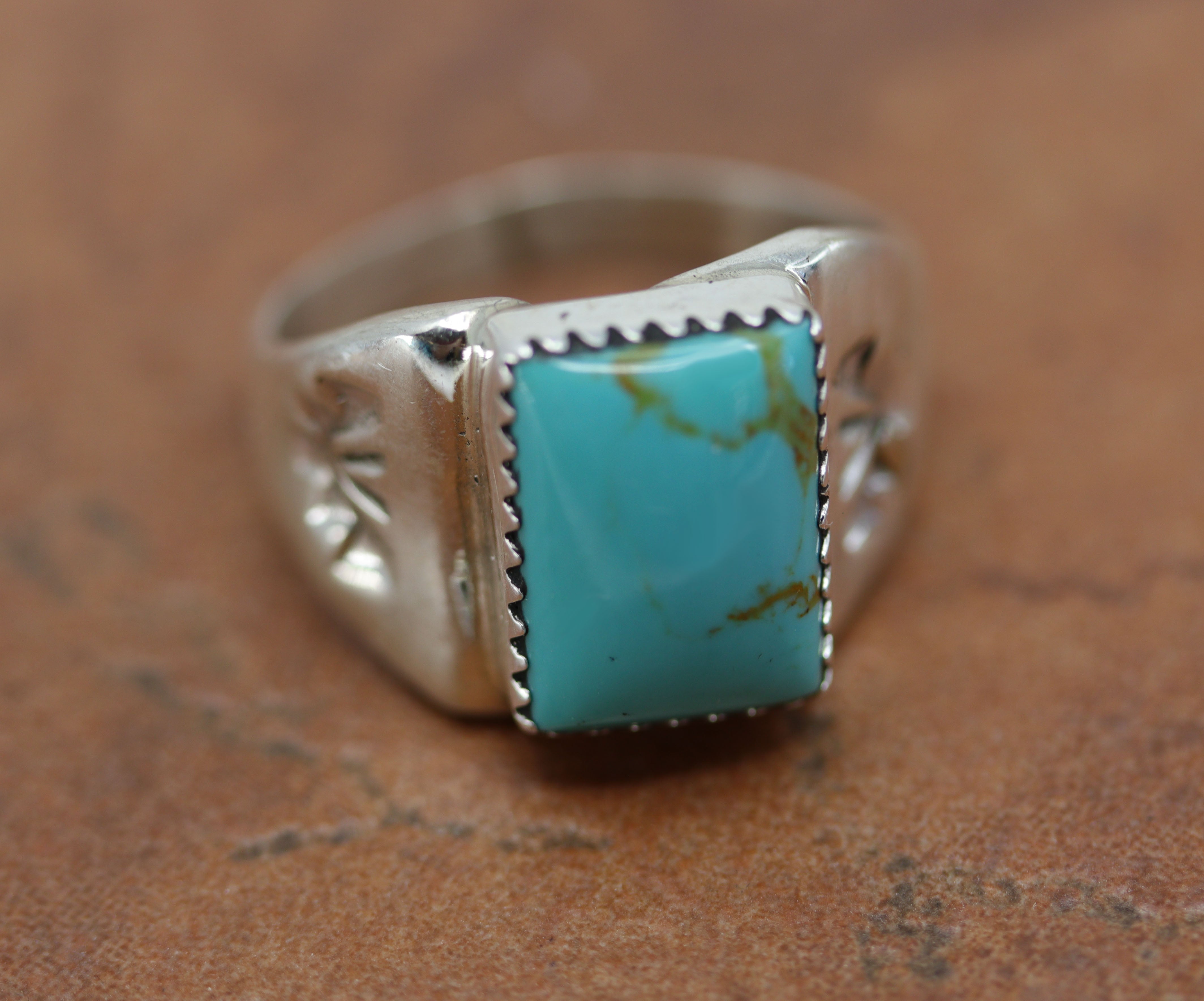 Beautiful Navajo Native American ring. It is made from sterling silver and turquoise. The ring size 9 and it is 5/8" in length.