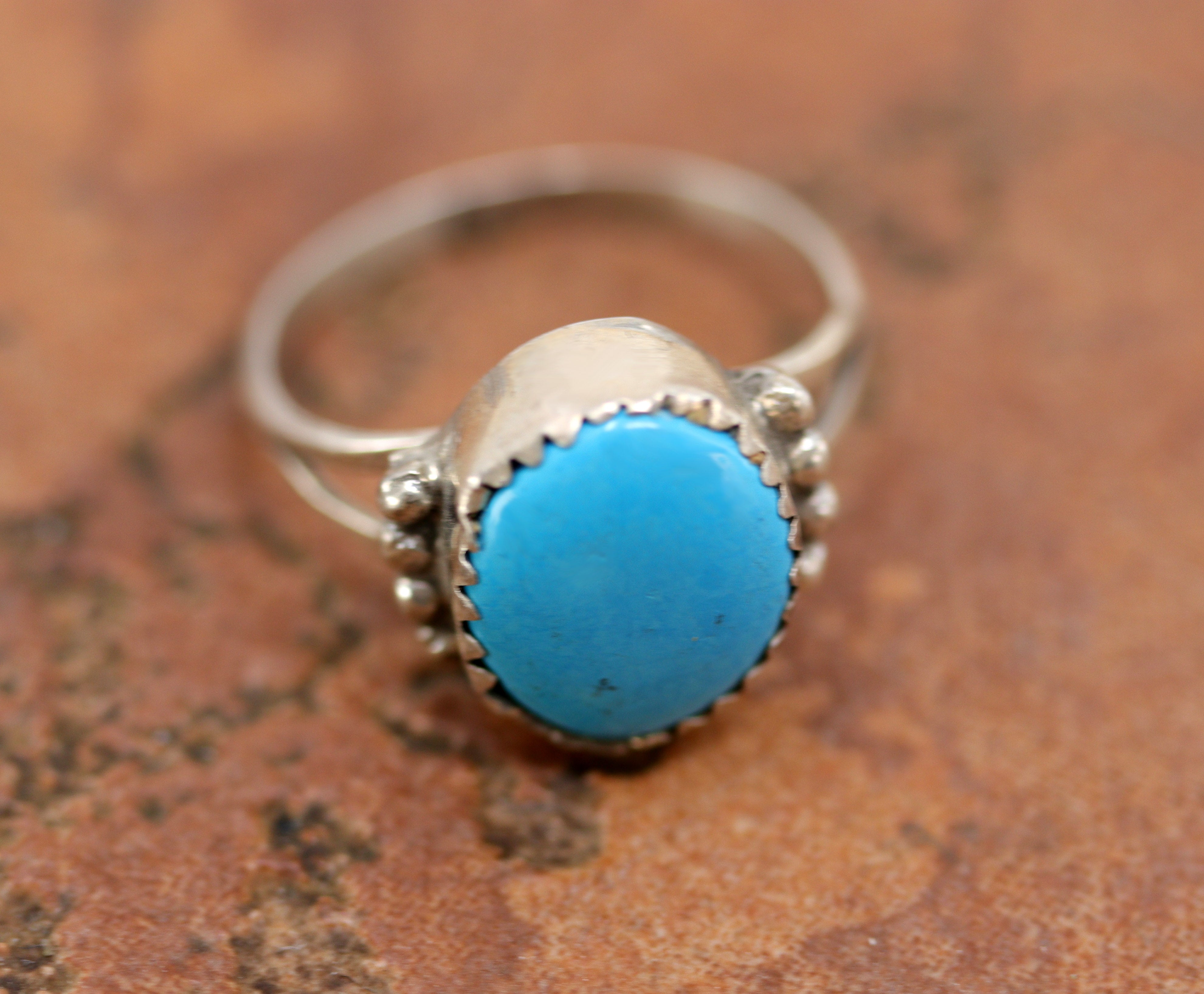 Navajo Native American ring. It is made from sterling silver and turquoise. The ring size 7 and it is 1/2" in length.