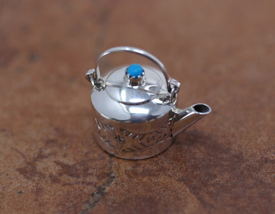 Navajo Silver Turquoise Tea Pot Pendant