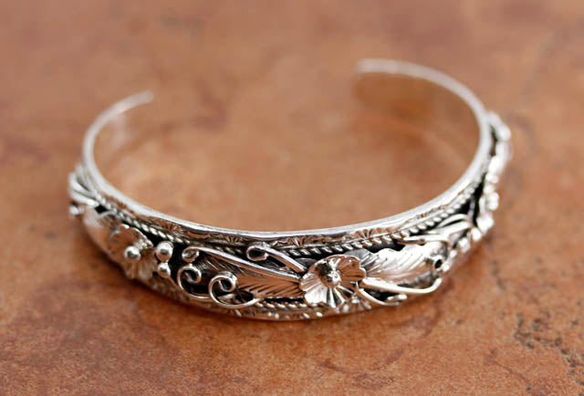 Navajo Sterling Floral Cuff Bracelet