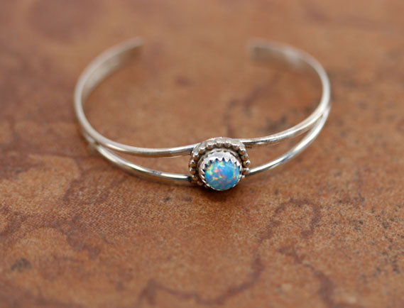 Navajo Sterling Silver Created Opal Childrens Bracelet