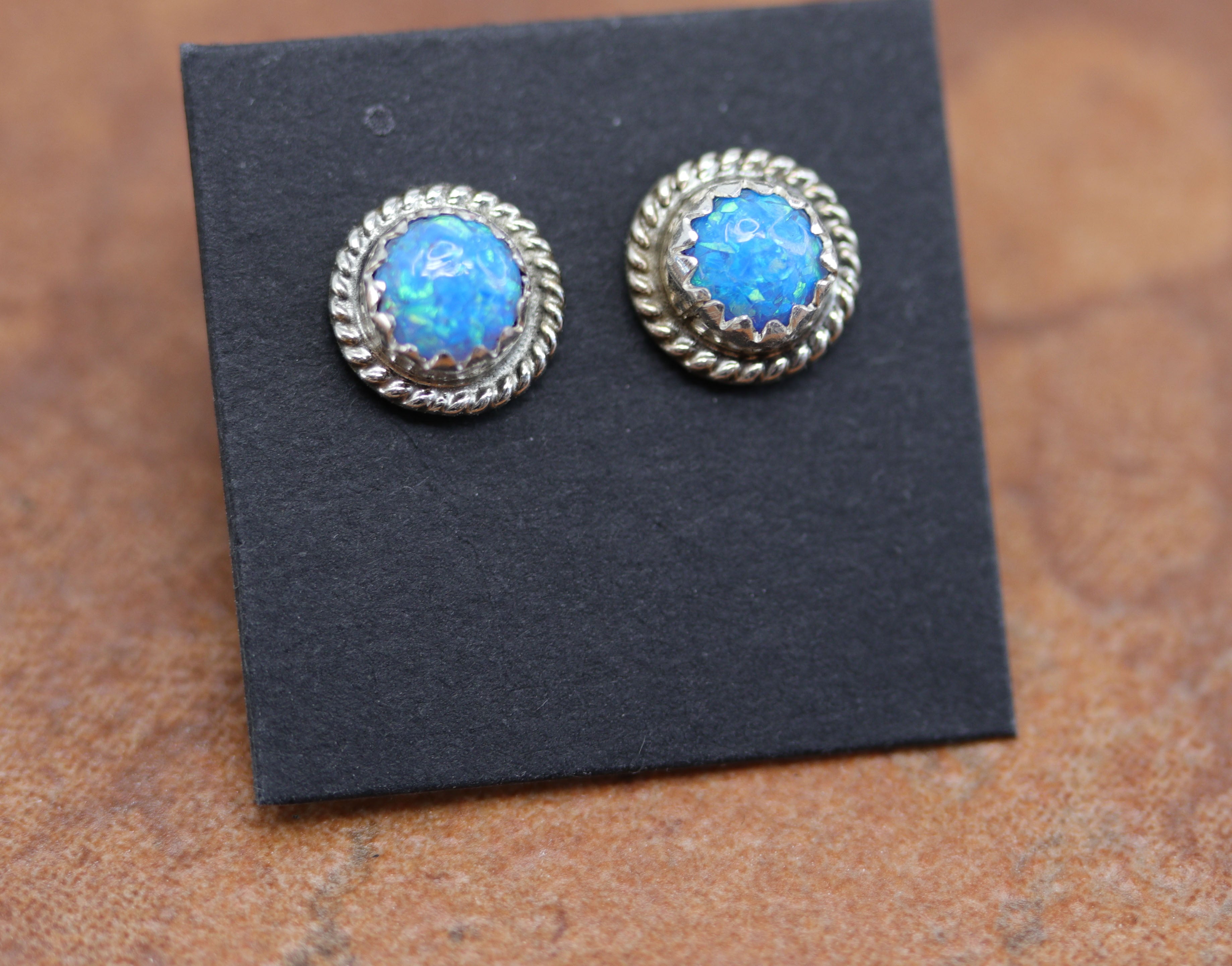 Beautiful Navajo post earrings. They are made from sterling silver and created opal. The earrings are 3/8" in diameter.