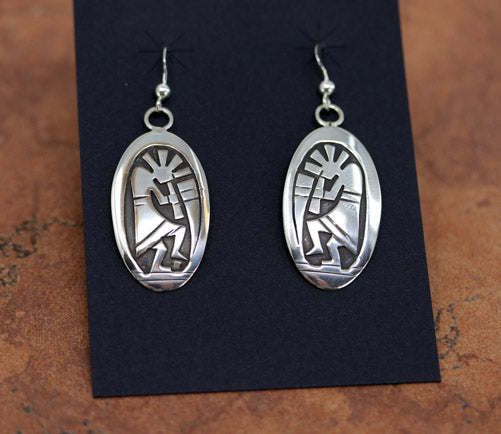 Beautiful Navajo earrings. They are made from sterling silver. Each earring is 1 7/8" in length including the hook and 3/4" in width.