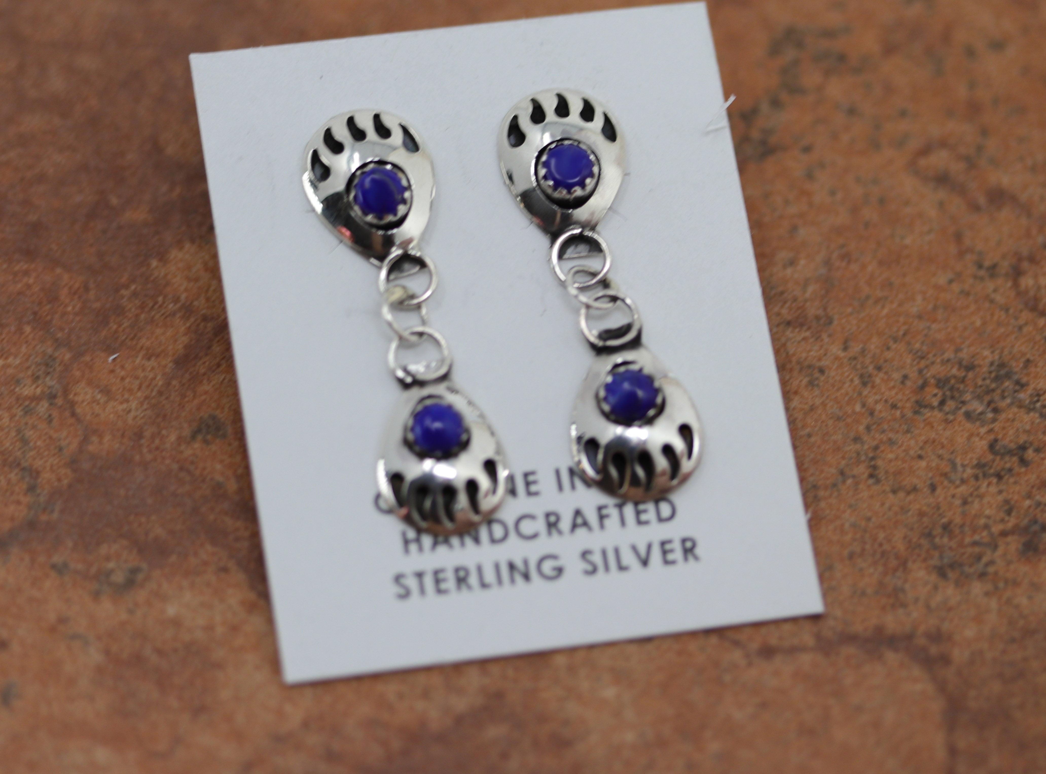 Navajo Sterling Silver Lapis Bear Paw Earrings