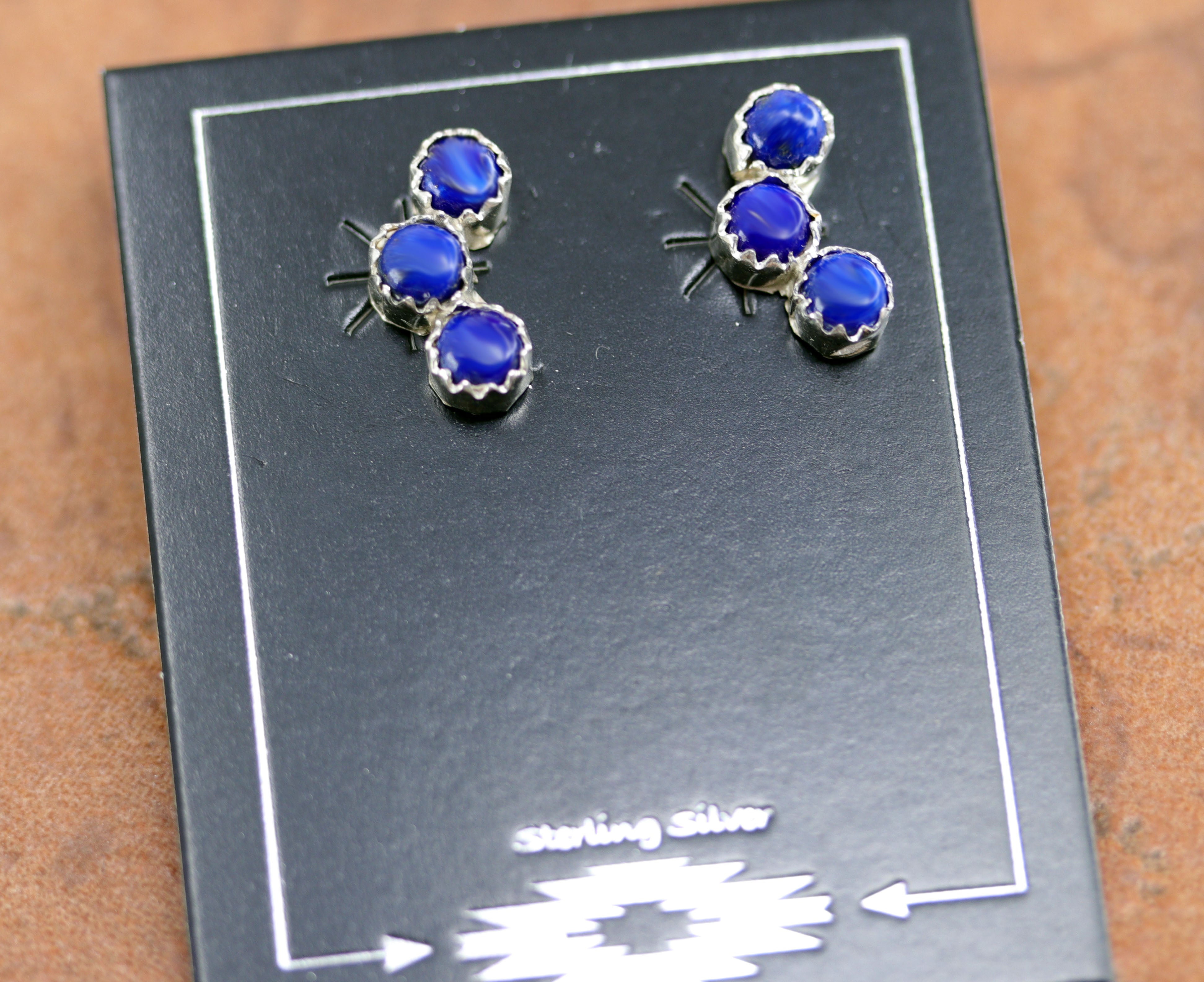 Beautiful Navajo earrings by Sylvya Chee. They are made from sterling silver and lapis. The earrings are 5/8" in length and 3/16" in width.