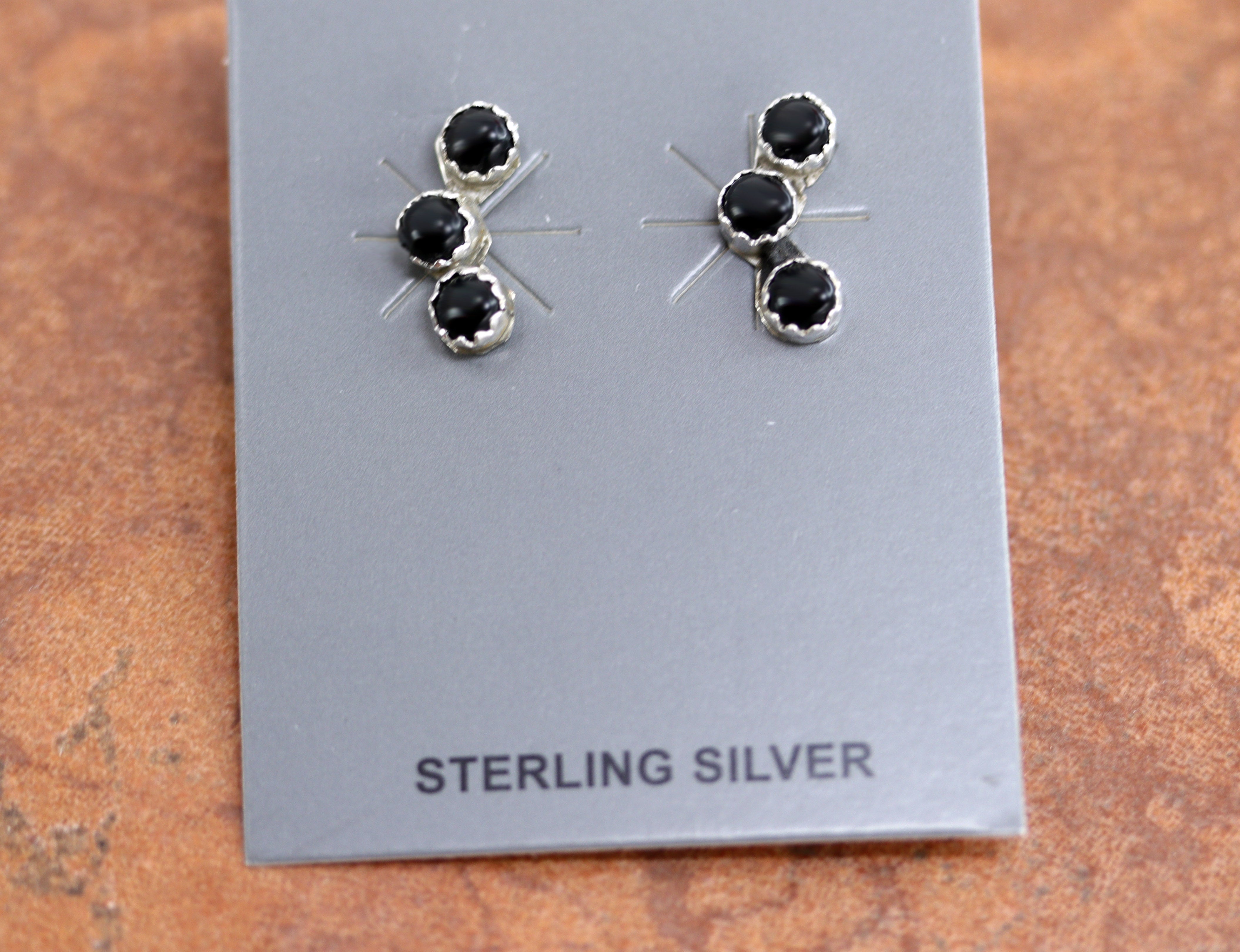 Beautiful Navajo earrings by Sylvya Chee. They are made from sterling silver and onyx. The earrings are 5/8" in length and 3/16" in width.