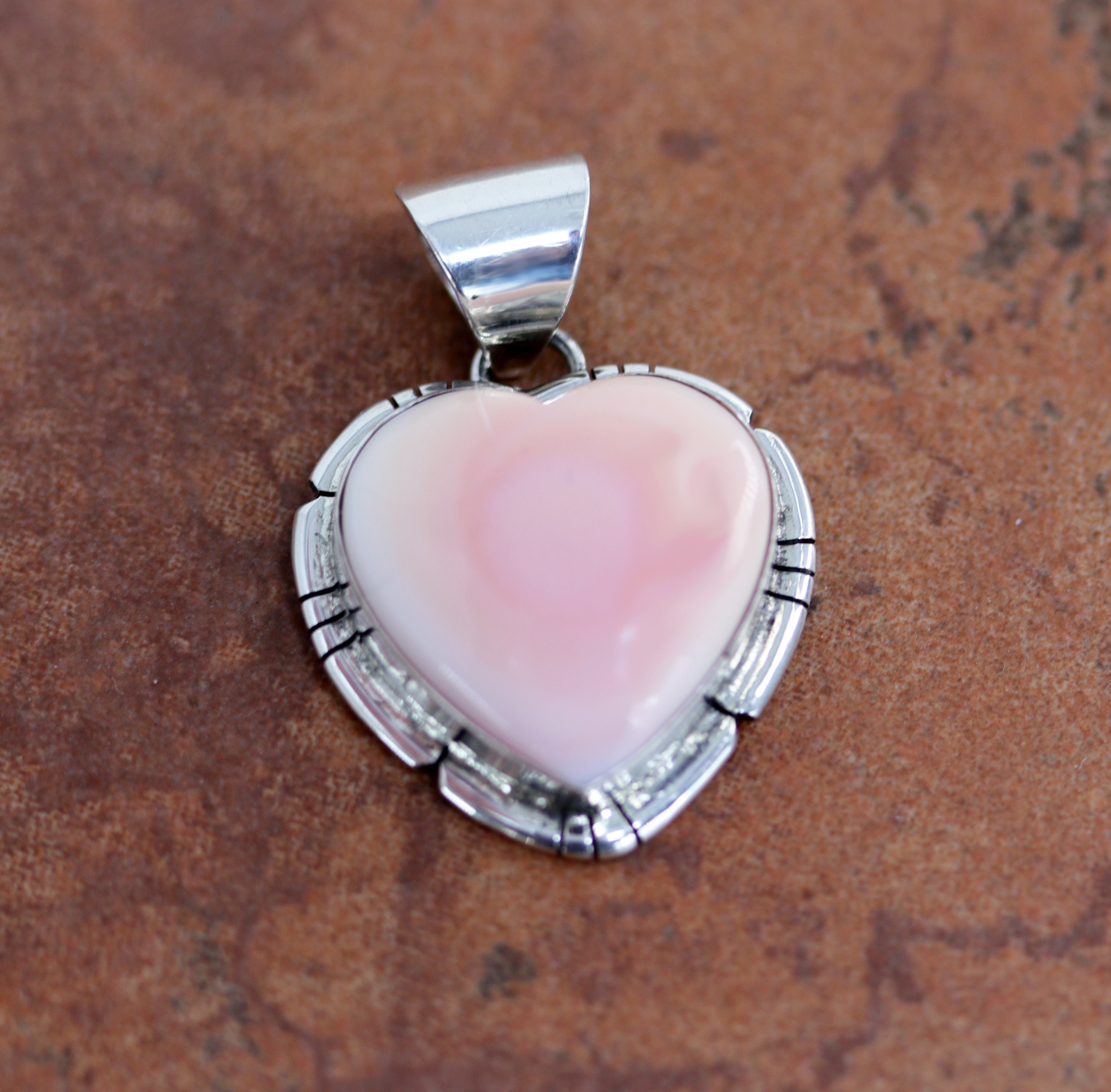 Navajo Sterling Silver Pink Conch Heart Pendant
