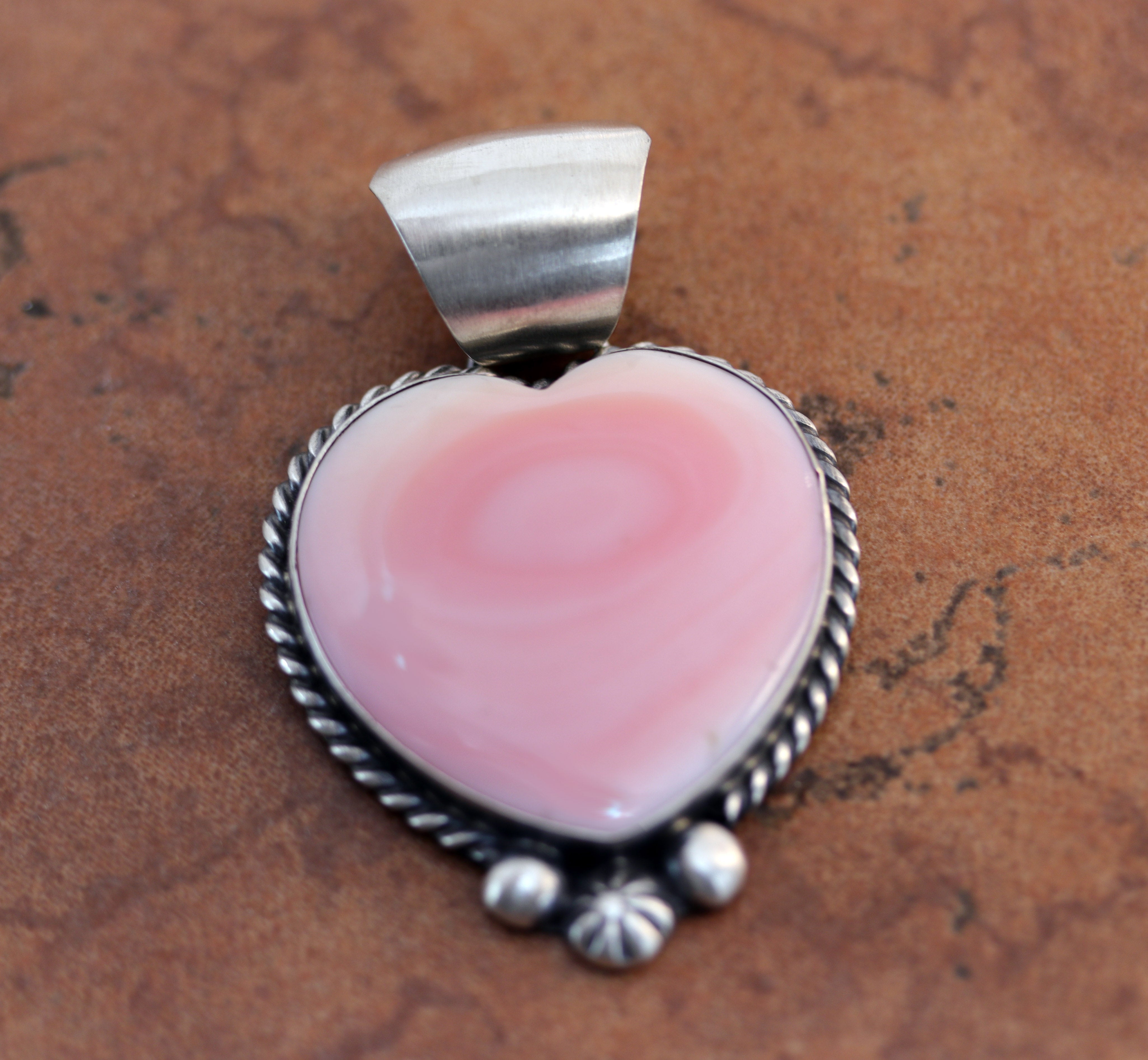 Navajo Sterling Silver Pink Conch Heart Pendant