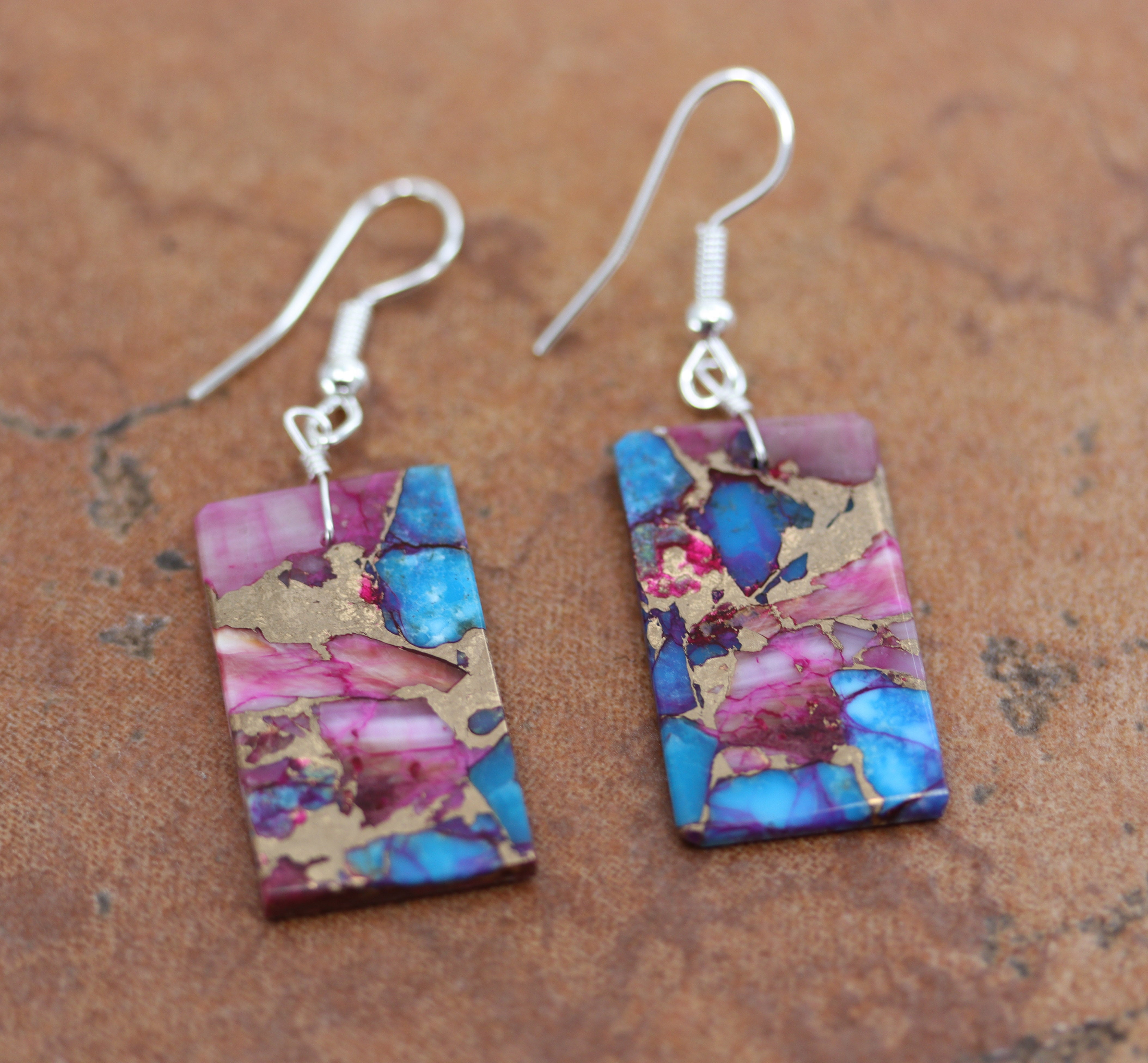 Navajo Sterling Silver Purple Mojave Block Earrings