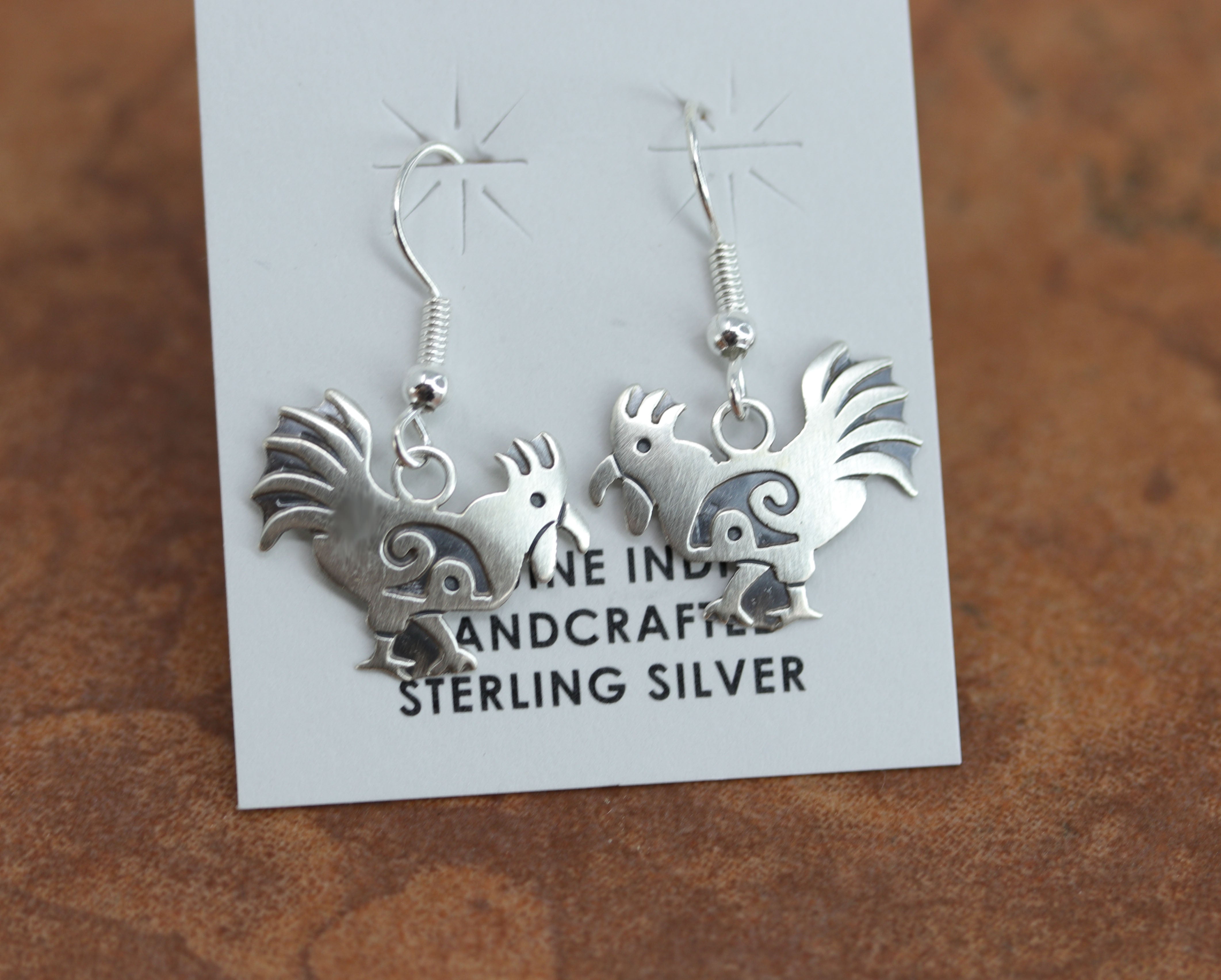 Navajo Sterling Silver Rooster Earrings by Stanley Gene