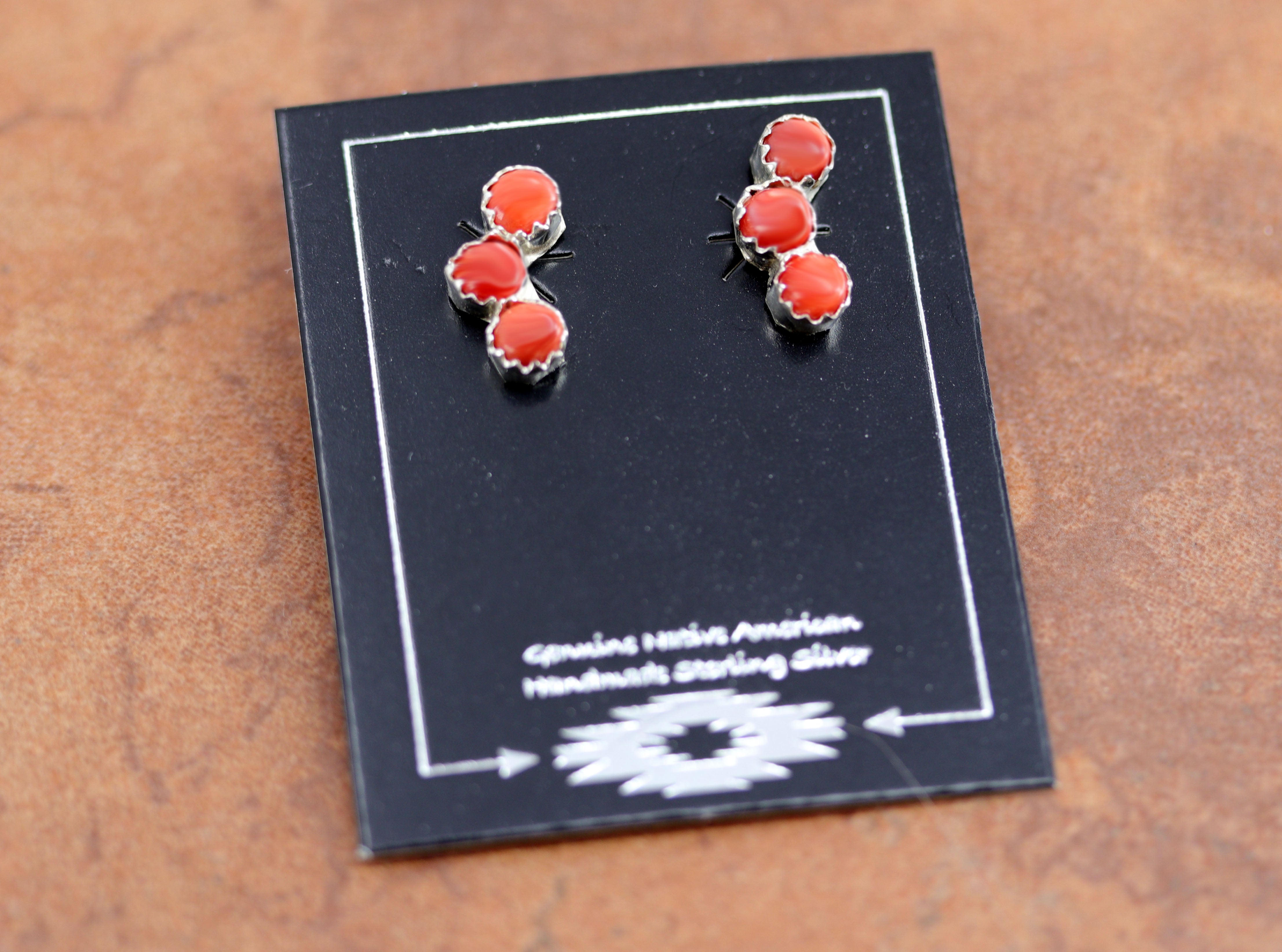 Beautiful Navajo earrings by Sylvya Chee. They are made from sterling silver and spiny oyster. The earrings are 5/8" in length and 3/16" in width.