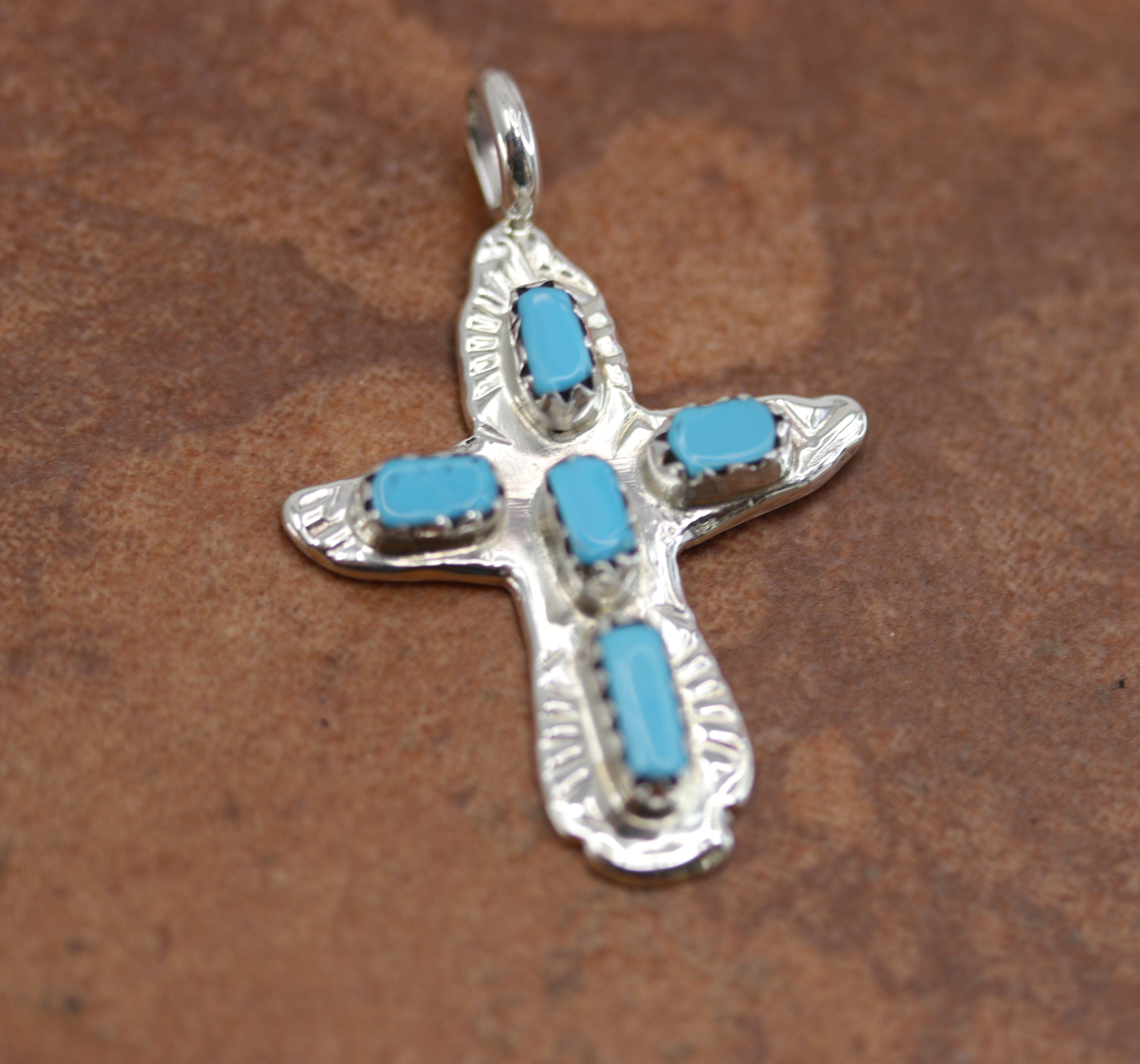 Navajo Sterling Silver Turquoise Cross Pendant