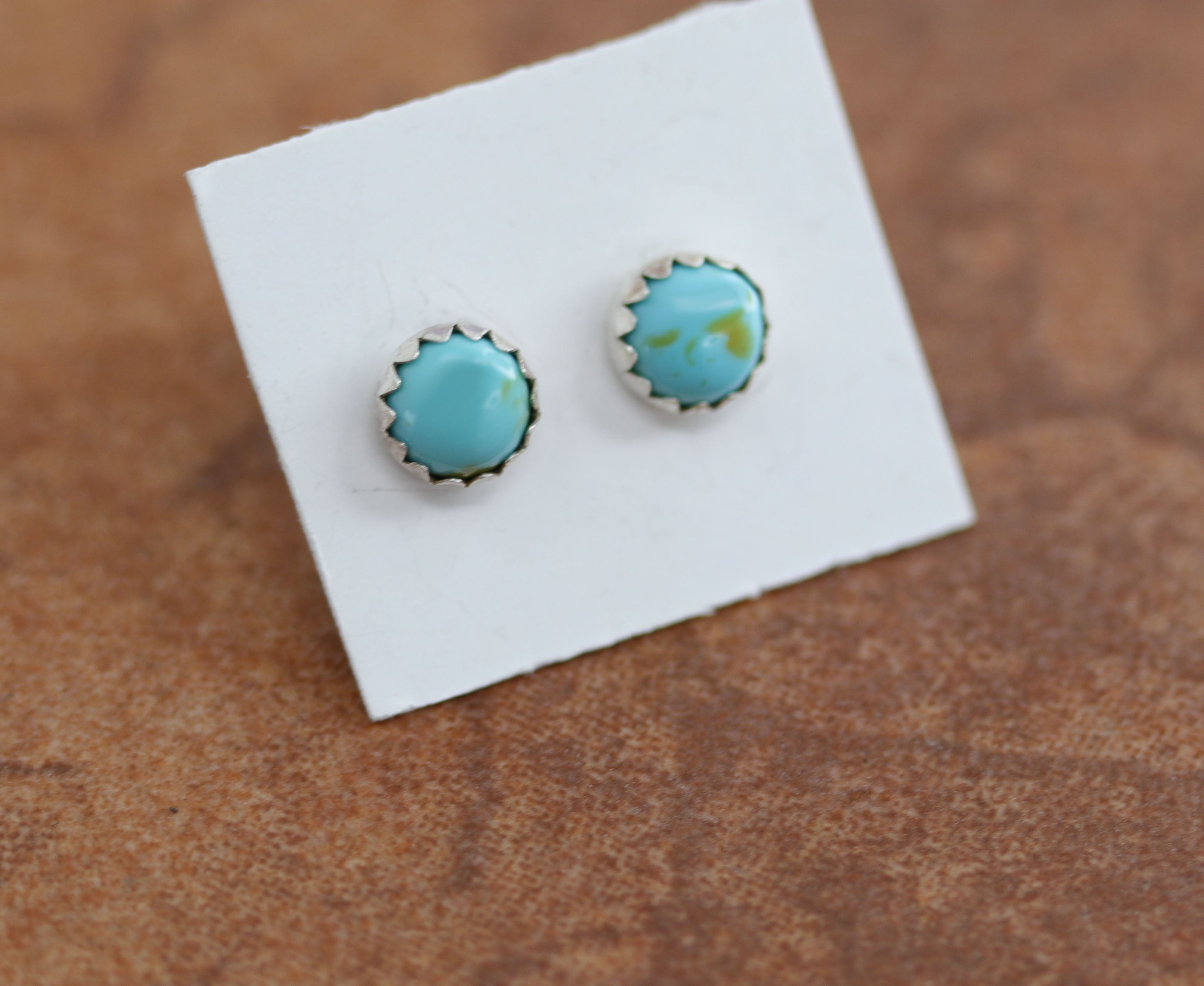 Beautiful Navajo post earrings. They are made from sterling silver and turquoise. The earrings are 1/4" in diameter.