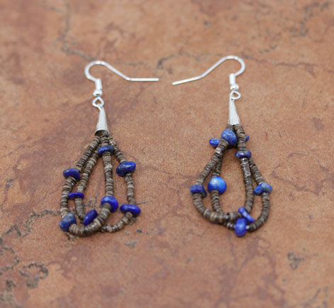 Navajo Sterling Silver Lapis Heishi Earrings