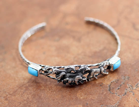 Navajo Sterling Turquoise Horse Bracelet