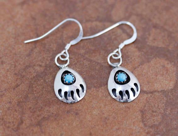 Native American earrings made from sterling silver and turquoise. The earrings are about 1 1/4" in length including the hook and 1/2" wide.