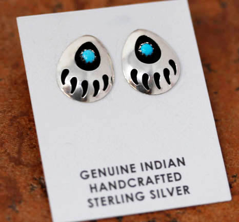 Native American earrings. They are made from sterling silver and turquoise. The earrings are about 3/4" in length and 1/2" wide.