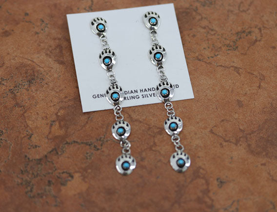 A beautiful Navajo Native American earrings. They are made from sterling silver and turquoise. The earrings are about 4" in length and 1/2" wide.