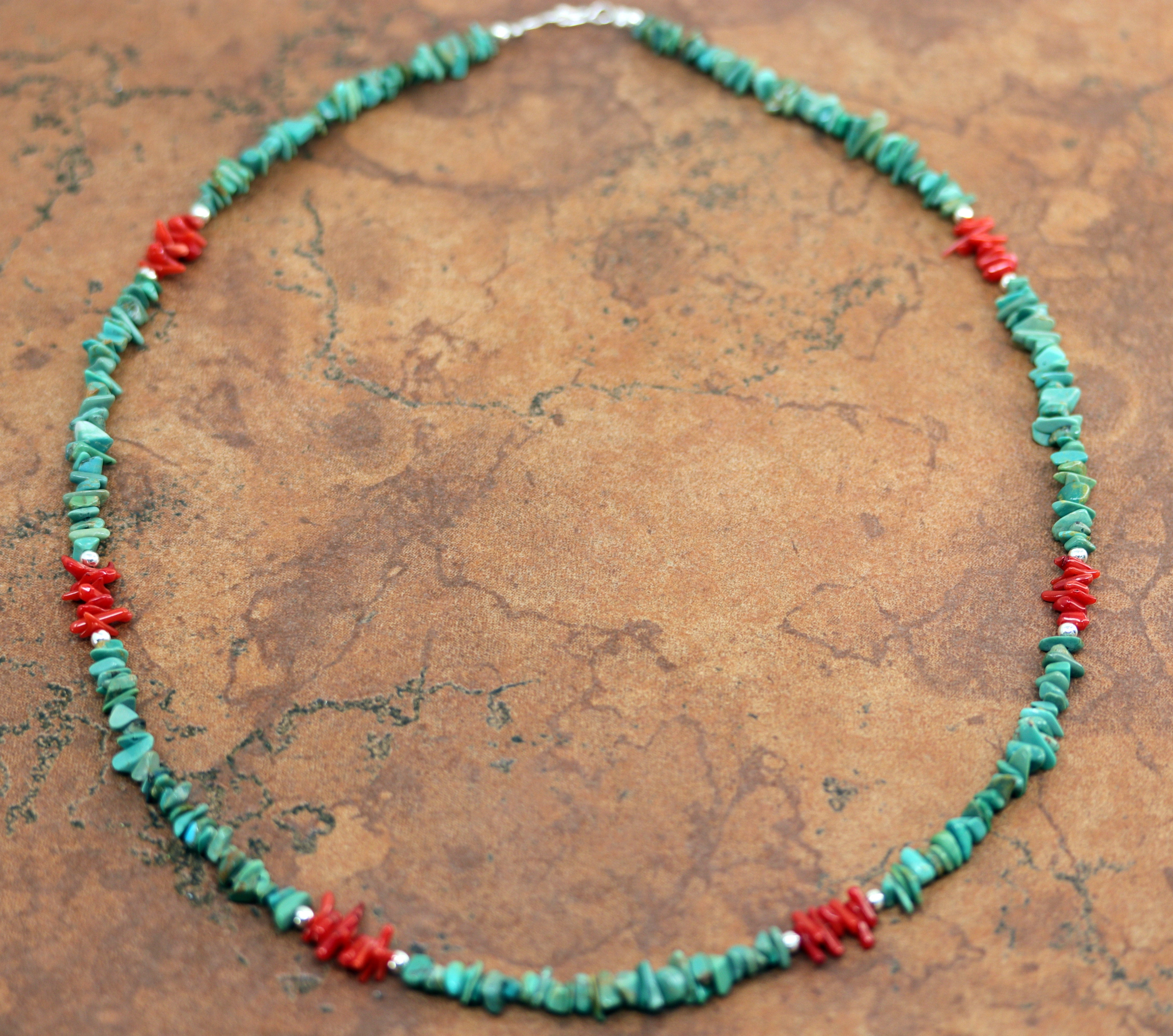 Navajo Turquoise Coral Heishi Nugget Necklace