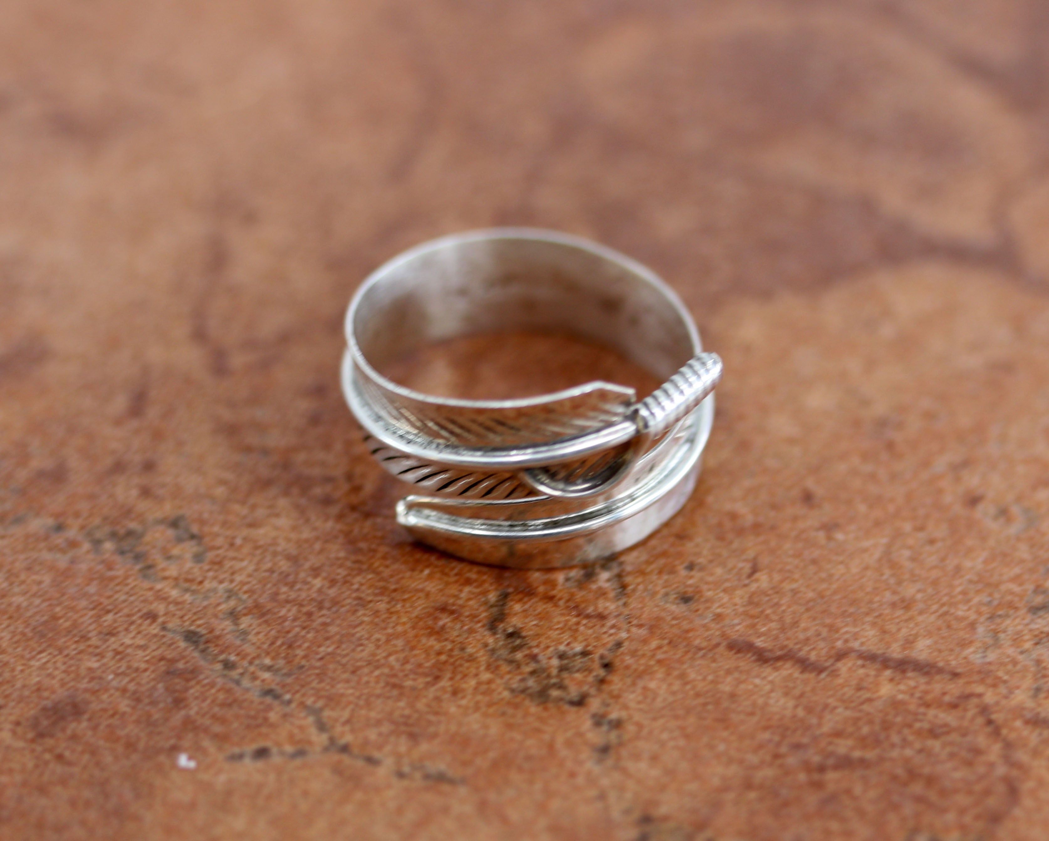 Navajo Wrap Around Sterling Silver Feather Spoon Ring Size 6-9