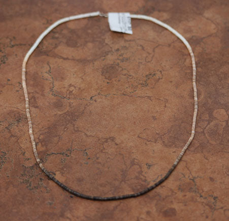 A beautiful Navajo Native American beaded heishi necklace made by Ramona Calavaza. The necklace is 23" in length and the beads measure 1/8".